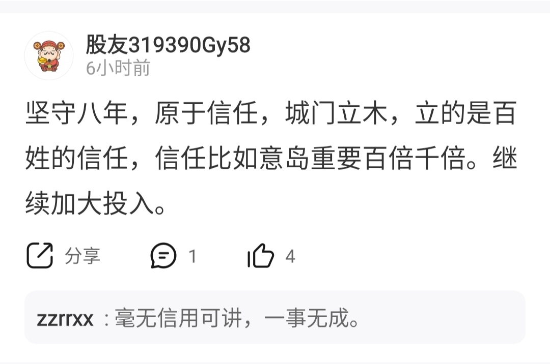 温馨提示: 1.根据《证券法》规定,禁止编造、传播虚假信息或者误导性信息,扰乱证券市场;2.用户在本社区发表的所有资料、言论等仅代表个人观点,与本网站立场无关,不对您构成任何投资建议。用户应基于自己的独立判断,自行决定证券投资并承担相应风险。《东方财富社区管理规定》