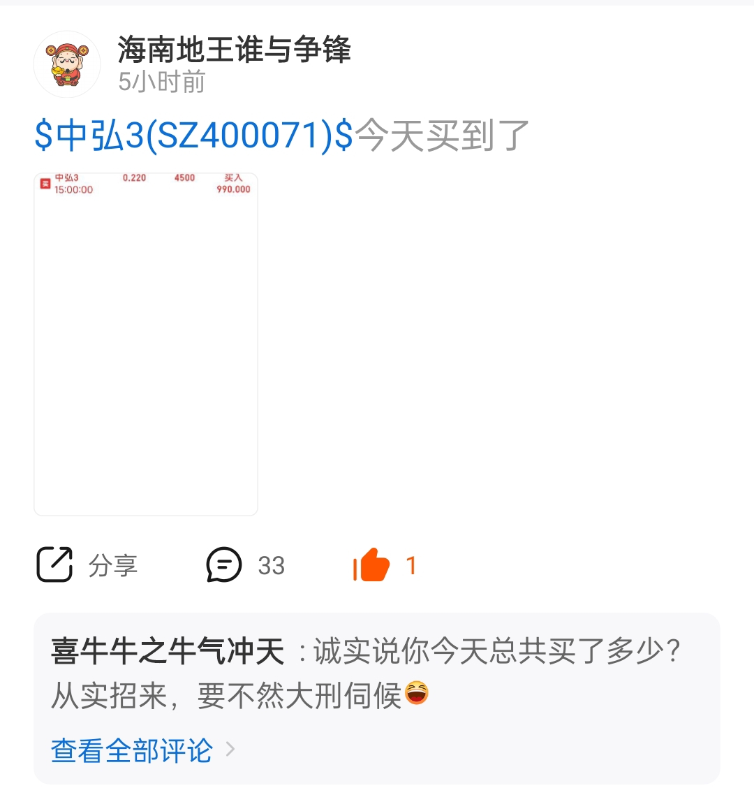 $中弘3(SZ400071)$ 中 弘吧也有主力在发帖,失敬失敬!