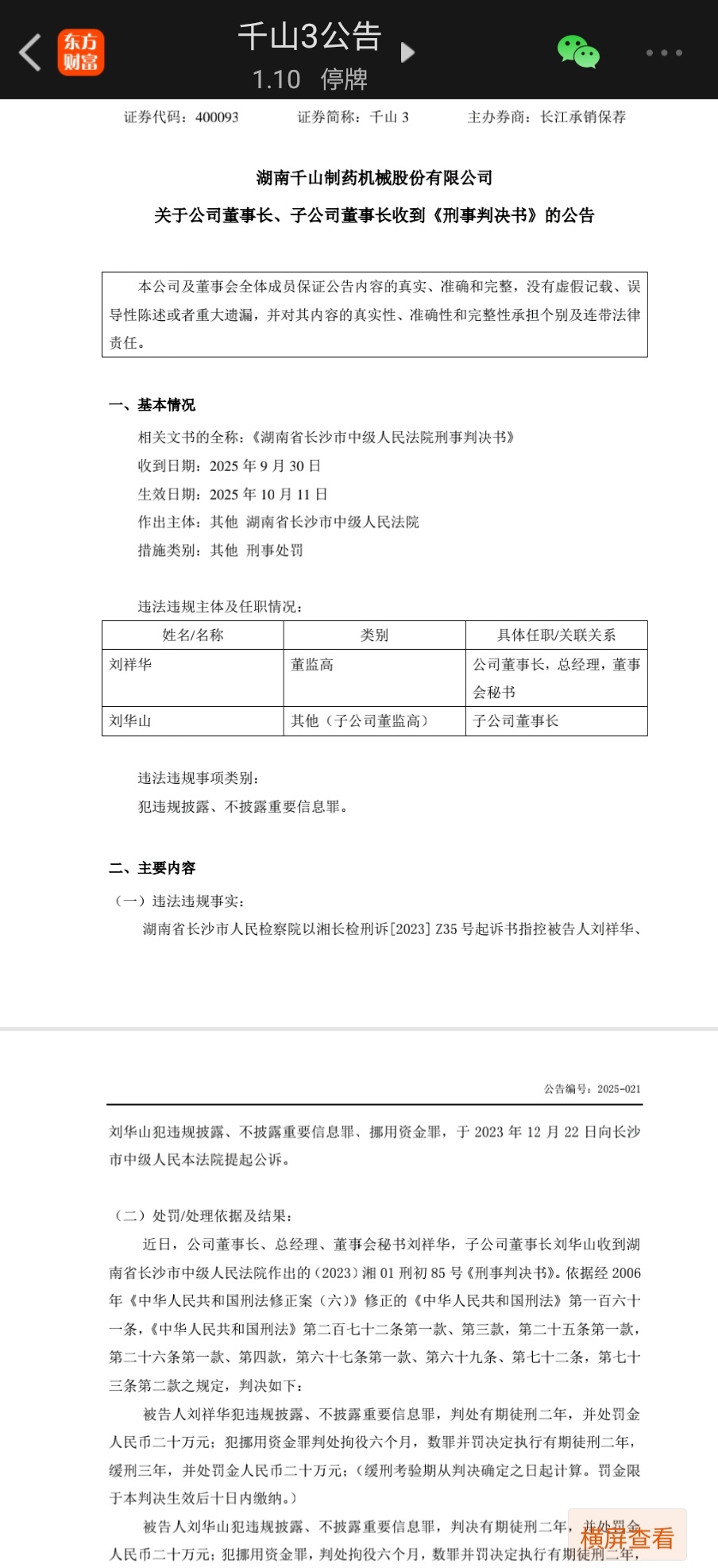 千山3的原实控人与董事长因犯违规违法的~不披露重要信息俩亲兄已被判了二年刑了,中