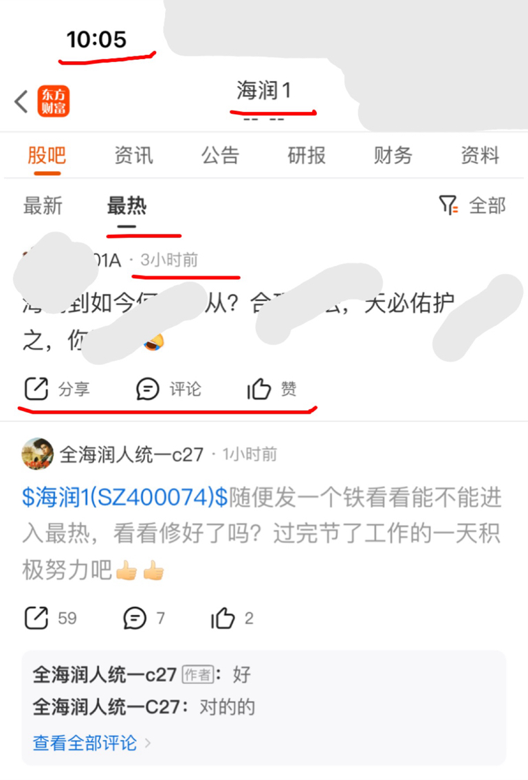 $宁波港(SH601018)$ $海润1(SZ400074)$ 咱就不说别的就无股人在最热画那个前置顶寓意何在?都作比了又怎么可能有好心眼呢?怎么可能是真信息呢?更何况它10多年没有海润票的。散上来的两张截图,8:58,10:05,今天不同时间段作比图让所有好人看看