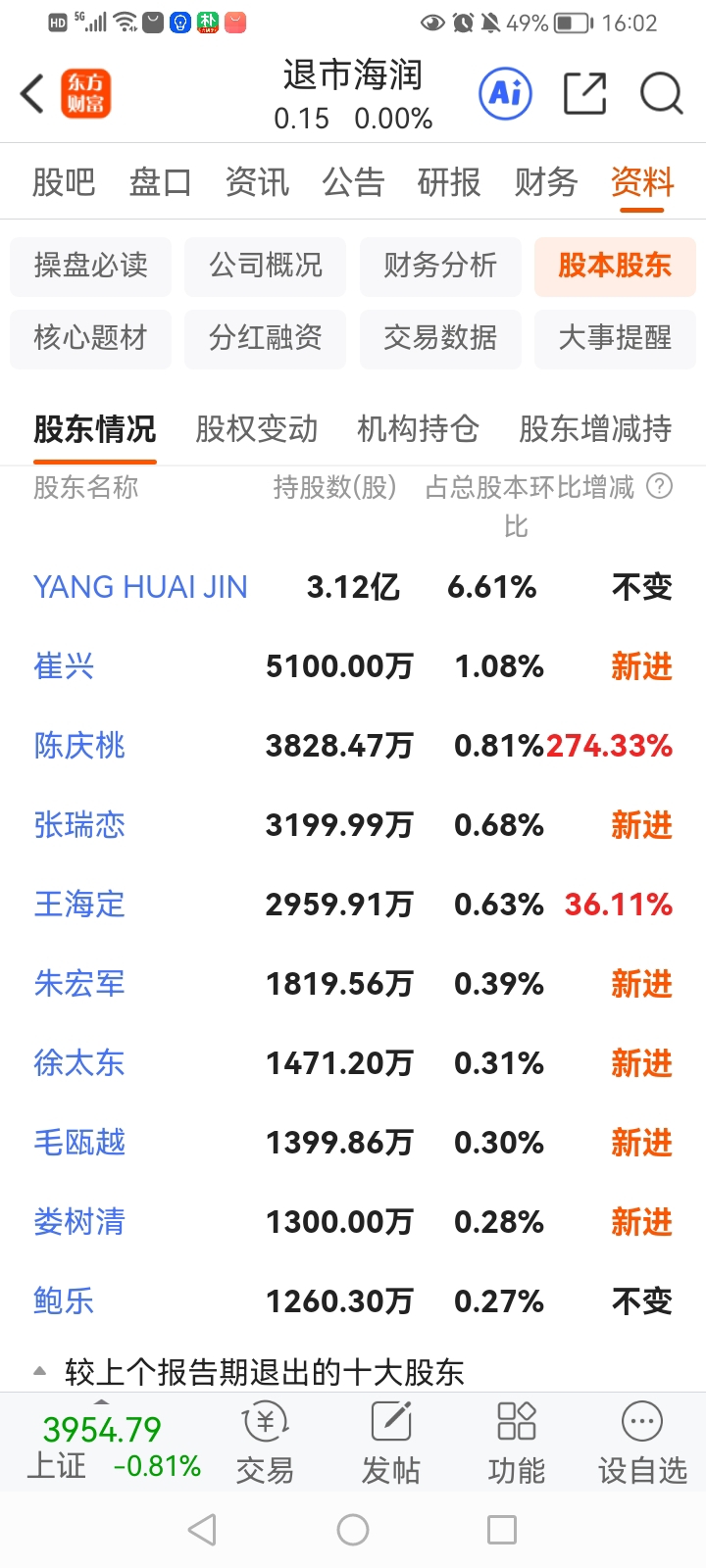 $海润1(SZ400074)$ 2019.6月整理期进了一群牛散
