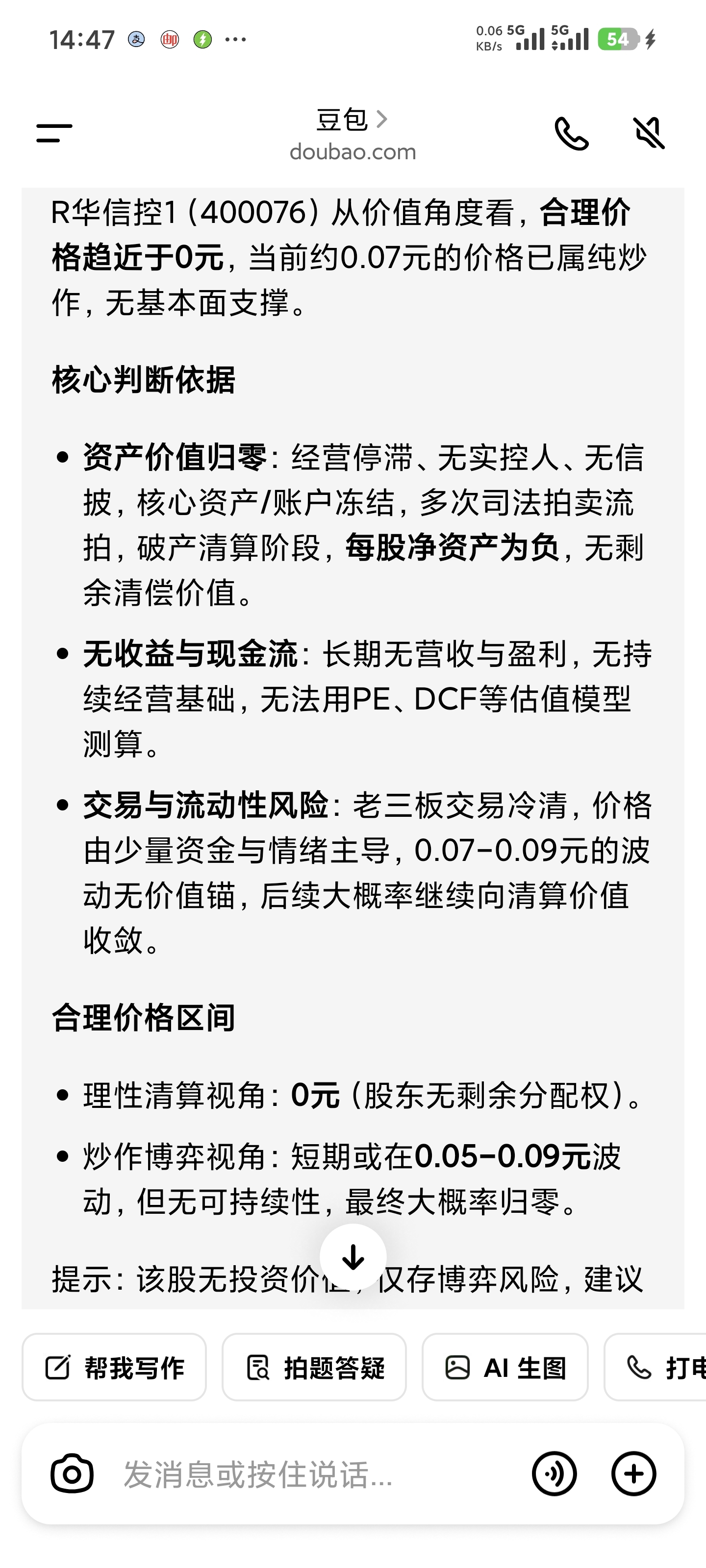 $R华信控1(SZ400076)$ 怕不怕各位股东们
