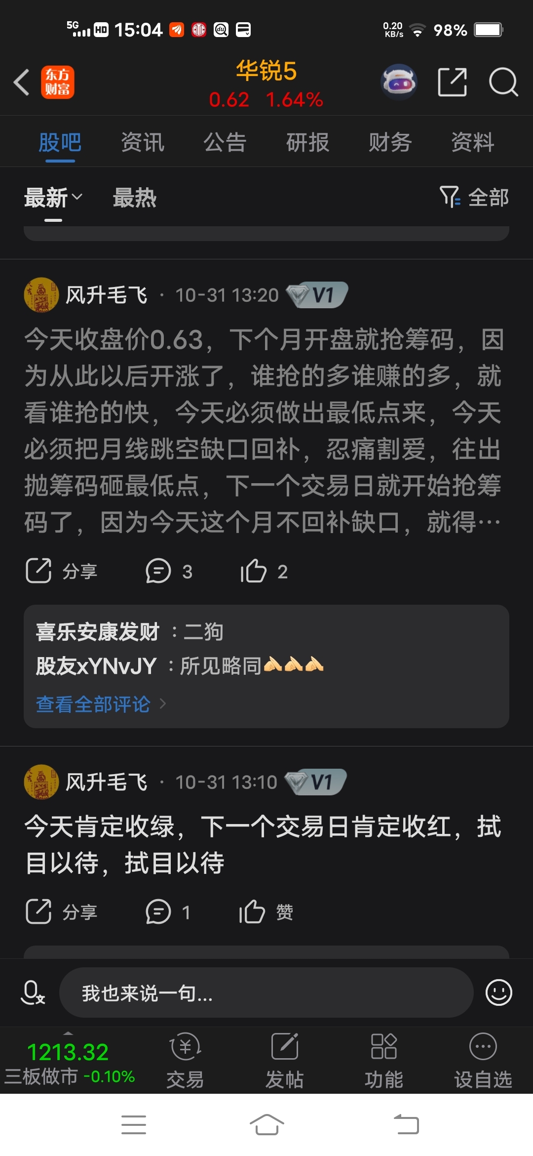 $华锐5(SZ400082)$ 周五那天我就说今天的走势看看吧,我这两篇文章截图让你看