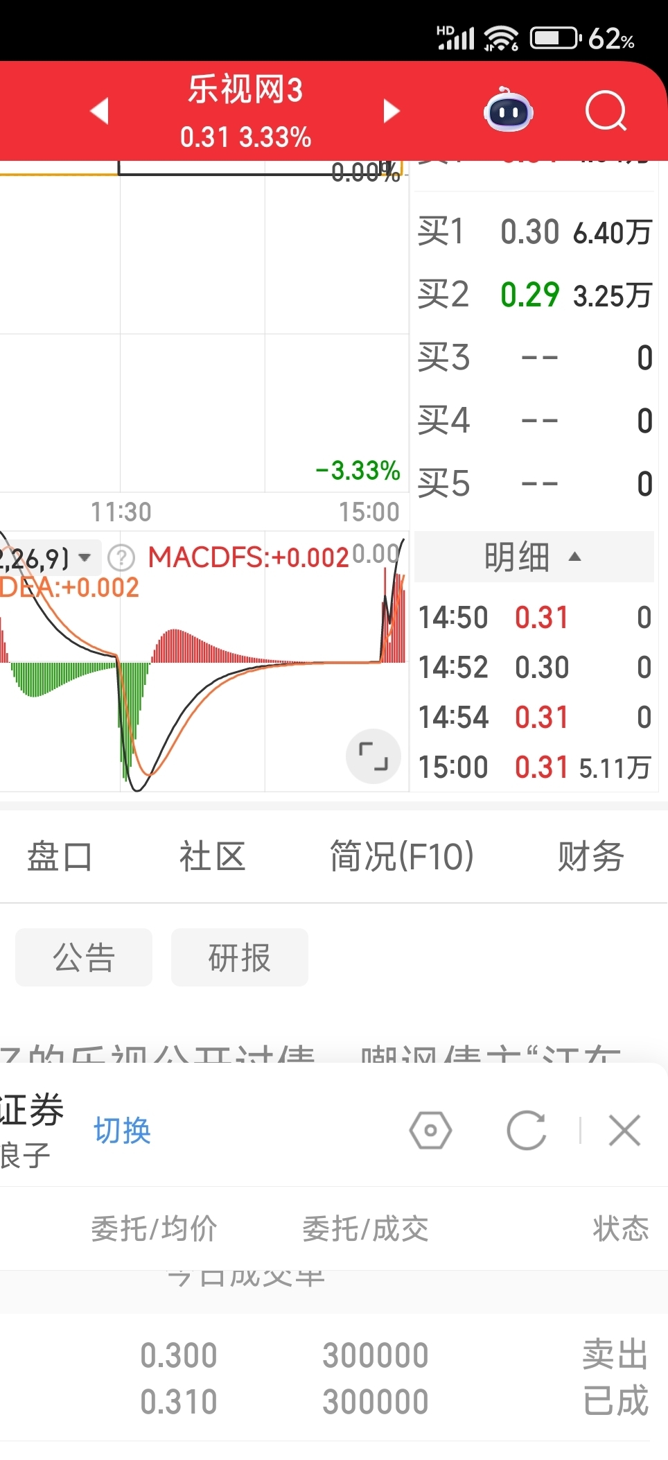 $乐视网3(SZ400084)$ 忘了撤单了 ,卖了一部分