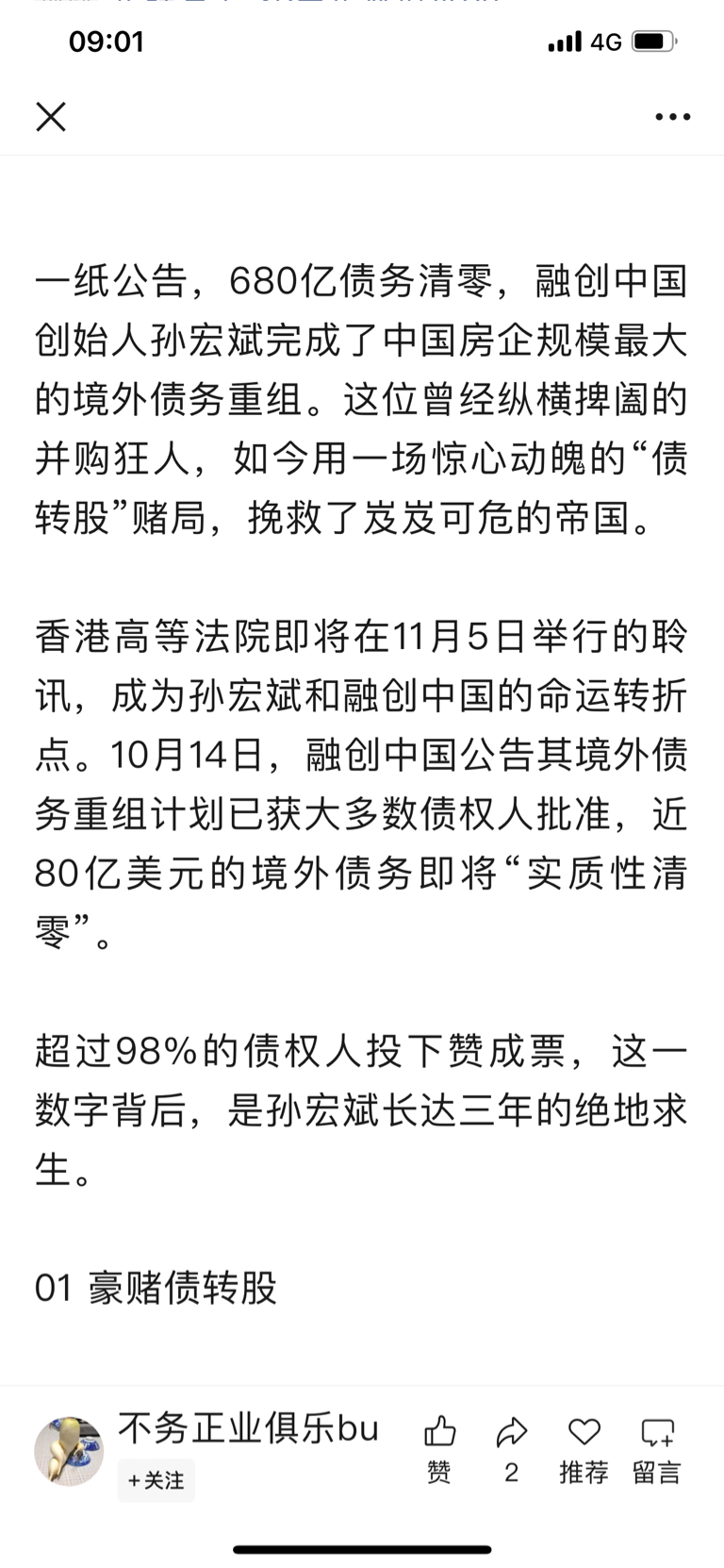 680亿债转股落地!孙宏斌绝地逢生,融创成民营企业化债样本