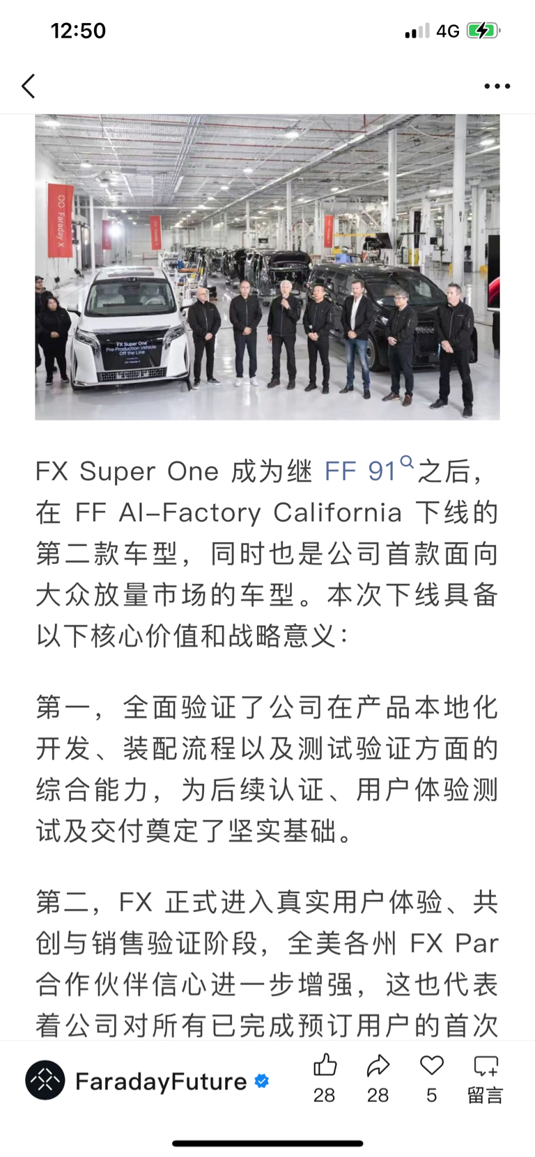 FX Super One预量产车汉福德工厂成功下线;中美汽车产业桥梁升级为EAI产业桥梁,1月7日FF股东日进行桥梁升级重大发布