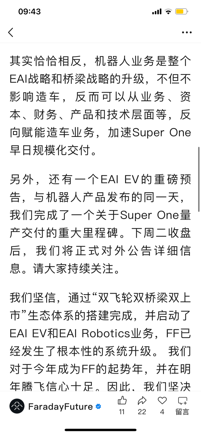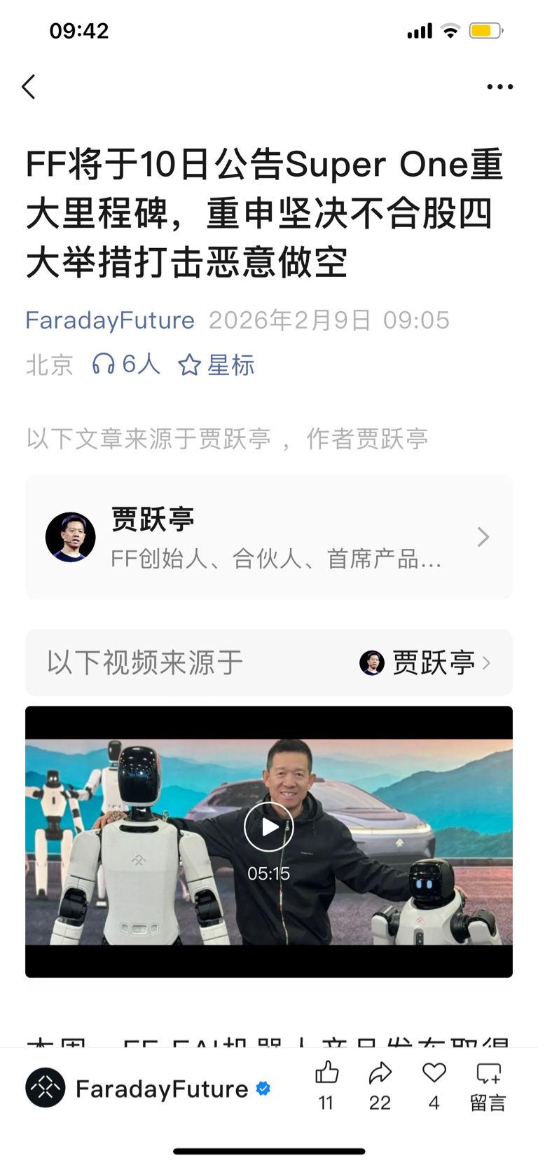 FF将于10日公告Super One重大里程碑,重申坚决不合股四大举措打击恶意做空