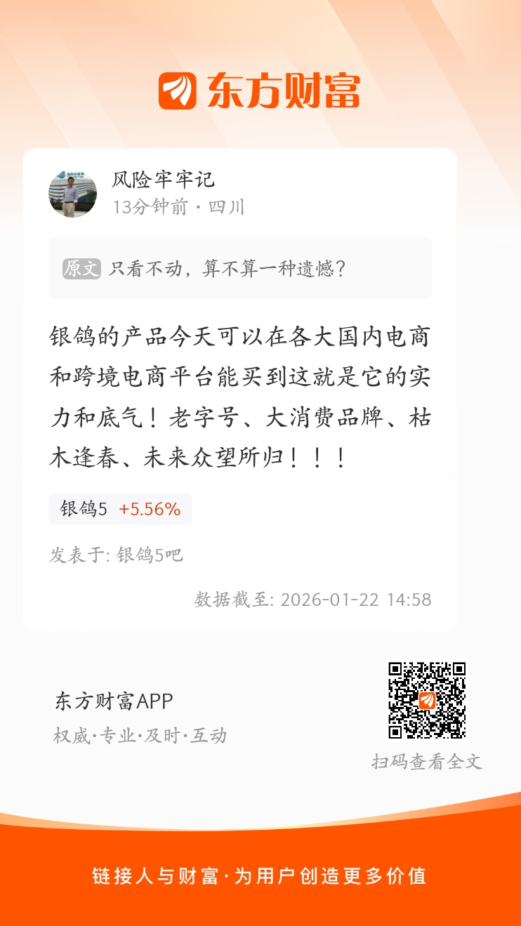 //@风险牢牢记 :银鸽的产品今天可以在各大国内电商和跨境电商平台能买到这就是它的实力和底气!老字号、大消费品牌、枯木逢春、未来众望所归!!!