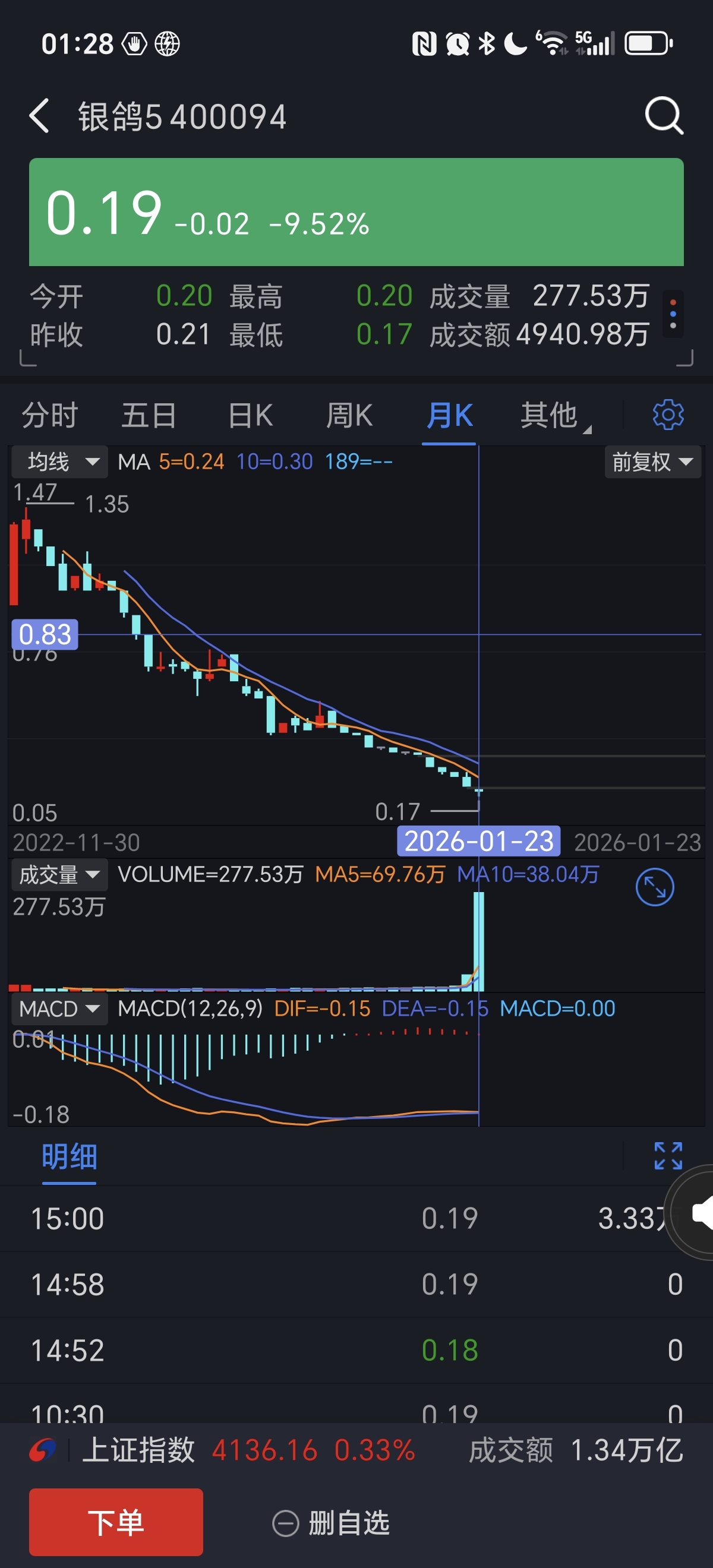 $银鸽5(SZ400094)$ 本月成交2.9亿股