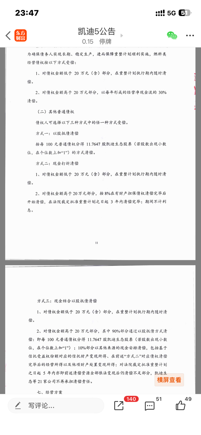 $凯迪5(SZ400096)$ 2022年10月26日凯迪集团重整方案是100元债权分得11.76股凯迪股票、也就是说债权人持有凯迪股票的成本价高达8.5元/股!特此纠正!期待凯迪复牌数数十倍升幅吧!在此!恭喜持有凯迪股票的朋友!