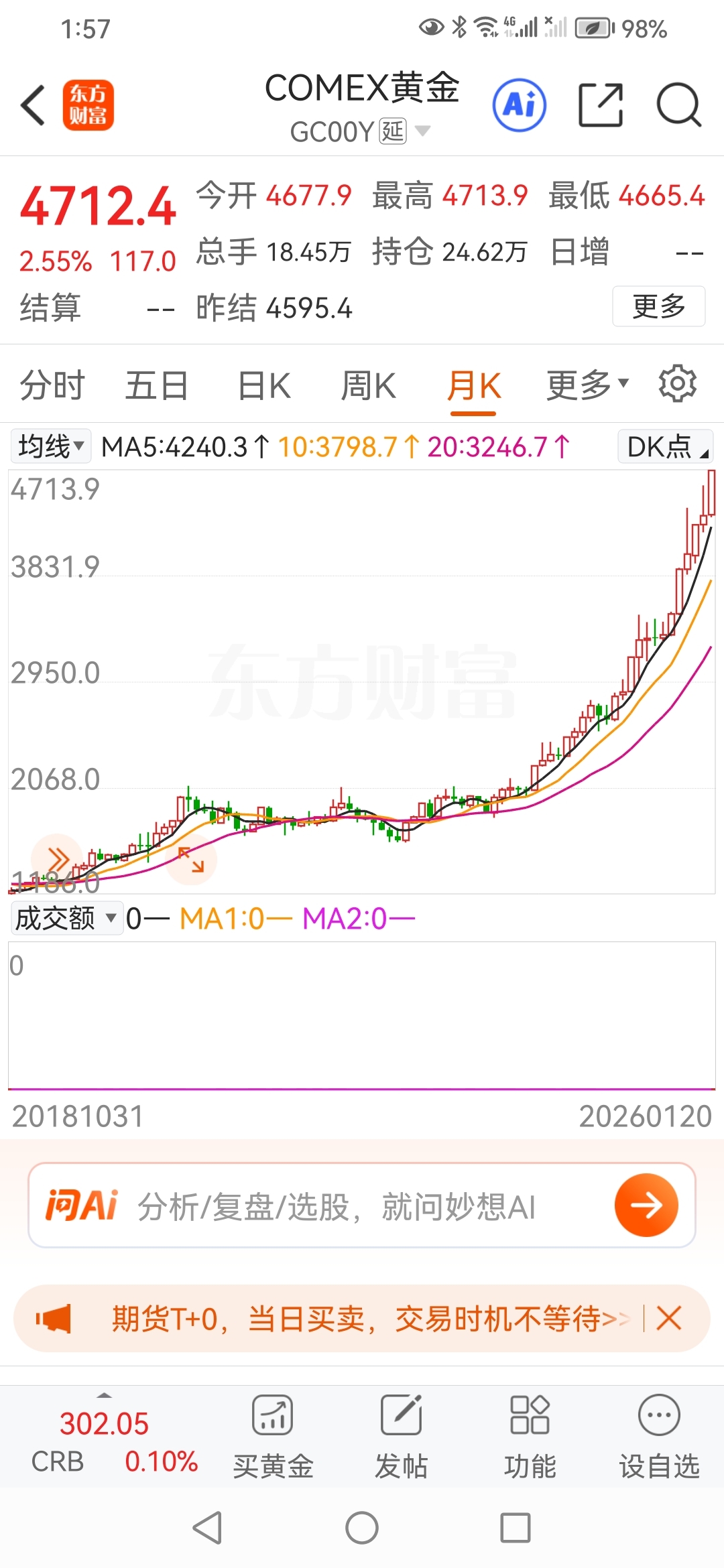 黄金期货今天又双叒叕创新髙