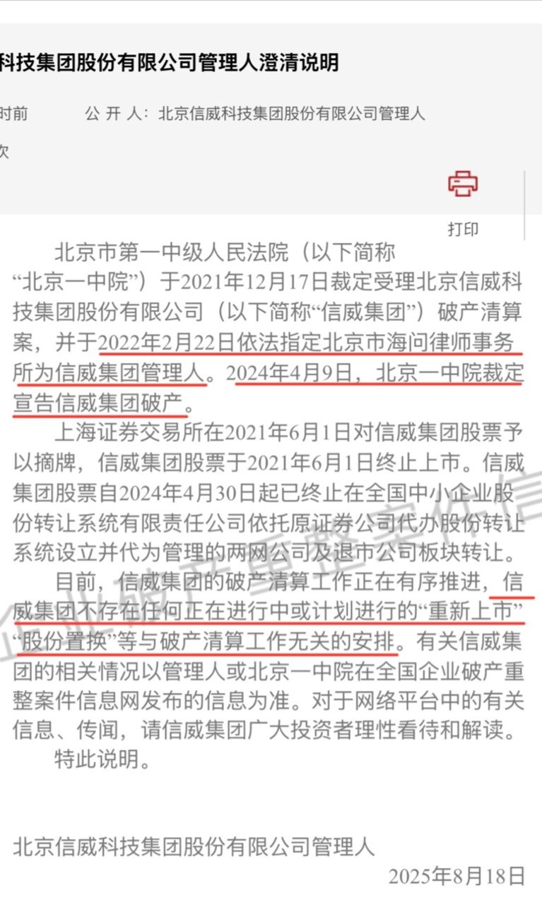秋林还行,破产清算公告,还吊着一口气,气若游丝,管子拔了,等医学检查宣判。看看人家信威的公告多决绝,直接埋了。工新至少还活着,浑身绷带,icu没拔管子