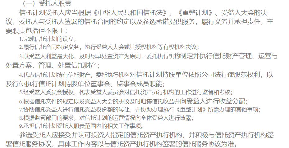 哈尔滨工大集团股份有限公司等73家公司实质合并重整案信托计划受托人和持股平台普通