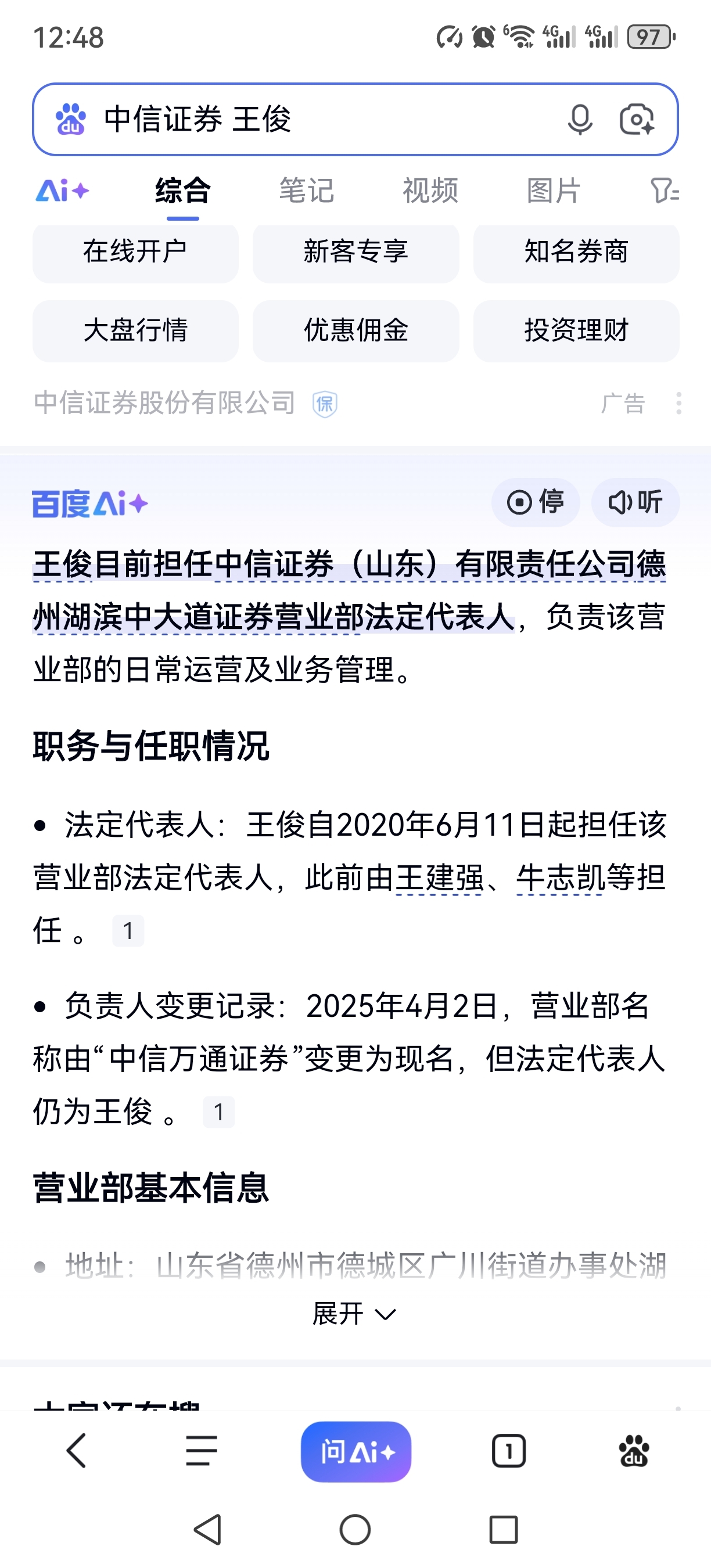王俊,中信证券山东德州负责人
