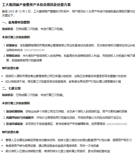 按照以前的拍卖进度,剩余5个资产要是拍卖的话早就排上日程了,现在看来是真的不拍卖了,也许是好事