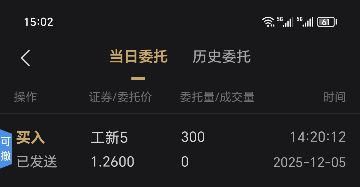 $工新5(SZ400100)$ 今天加大到300谷,还是没有买到