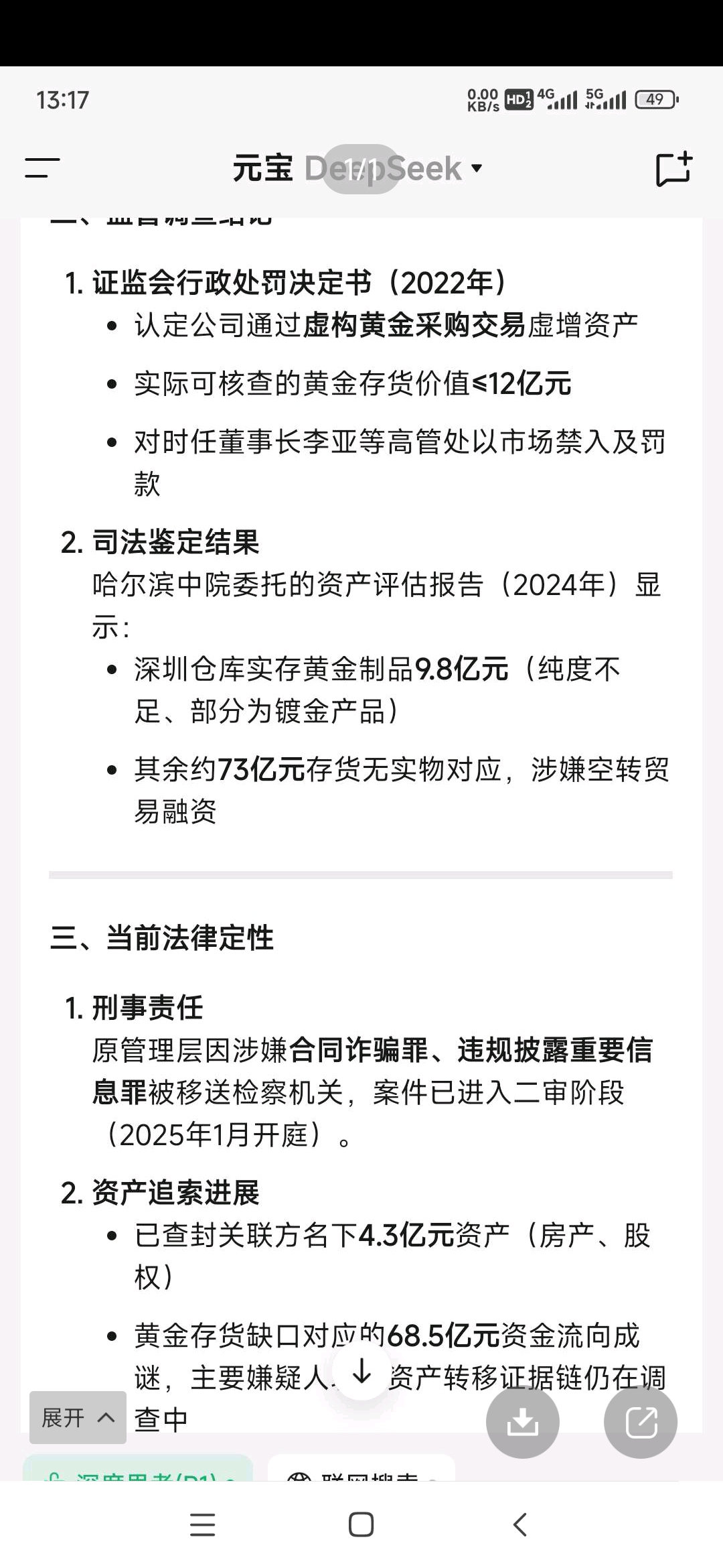 这是人家问Deepseek的答案二李有可能选择接受刑事和民事处罚,不归还十多亿占