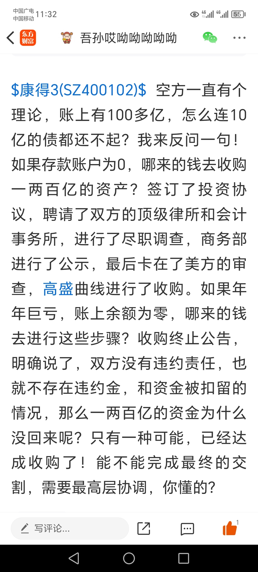 $康得3(SZ400102)$ 存款是真的,收购也是真的,没有完成最终的交割也是真的,需要交换协调!