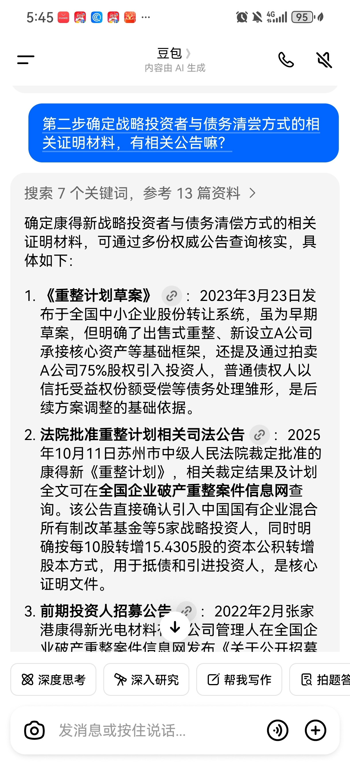 $康得3(SZ400102)$ 真的吗?各位股友,我还有35600股。