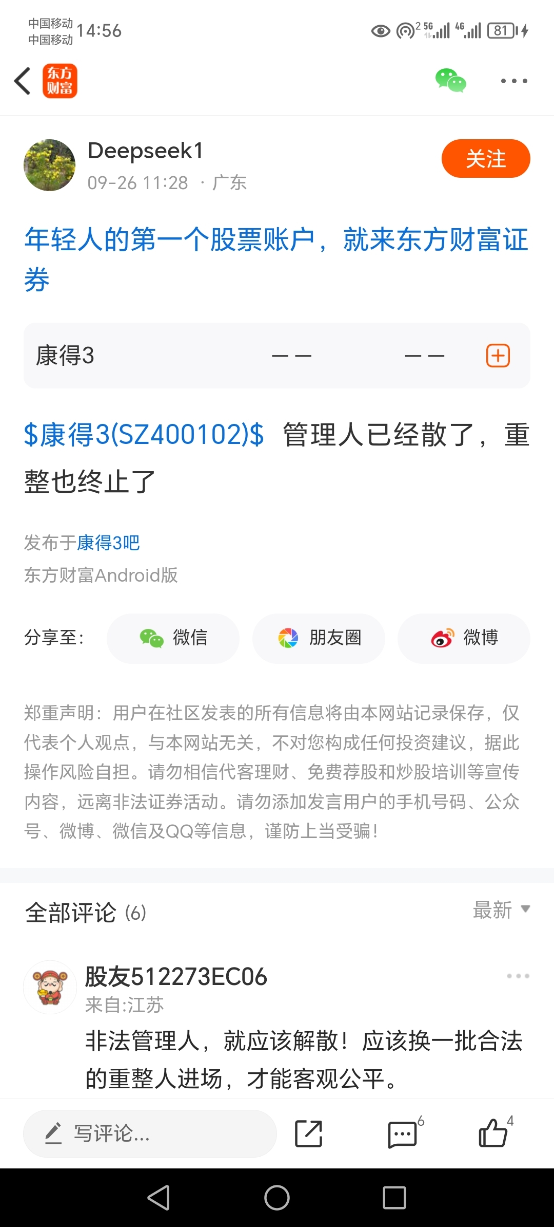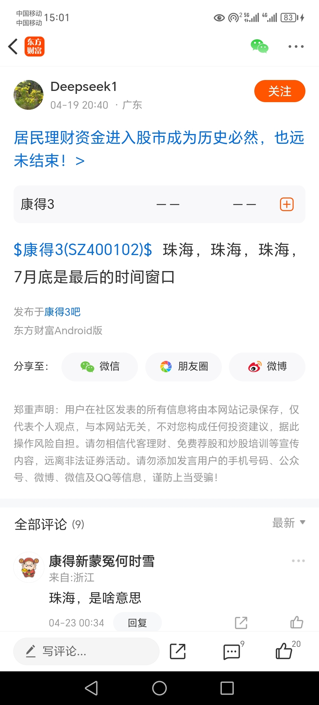 温馨提示: 1.根据《证券法》规定,禁止编造、传播虚假信息或者误导性信息,扰乱证券市场;2.用户在本社区发表的所有资料、言论等仅代表个人观点,与本网站立场无关,不对您构成任何投资建议。用户应基于自己的独立判断,自行决定证券投资并承担相应风险。《东方财富社区管理规定》