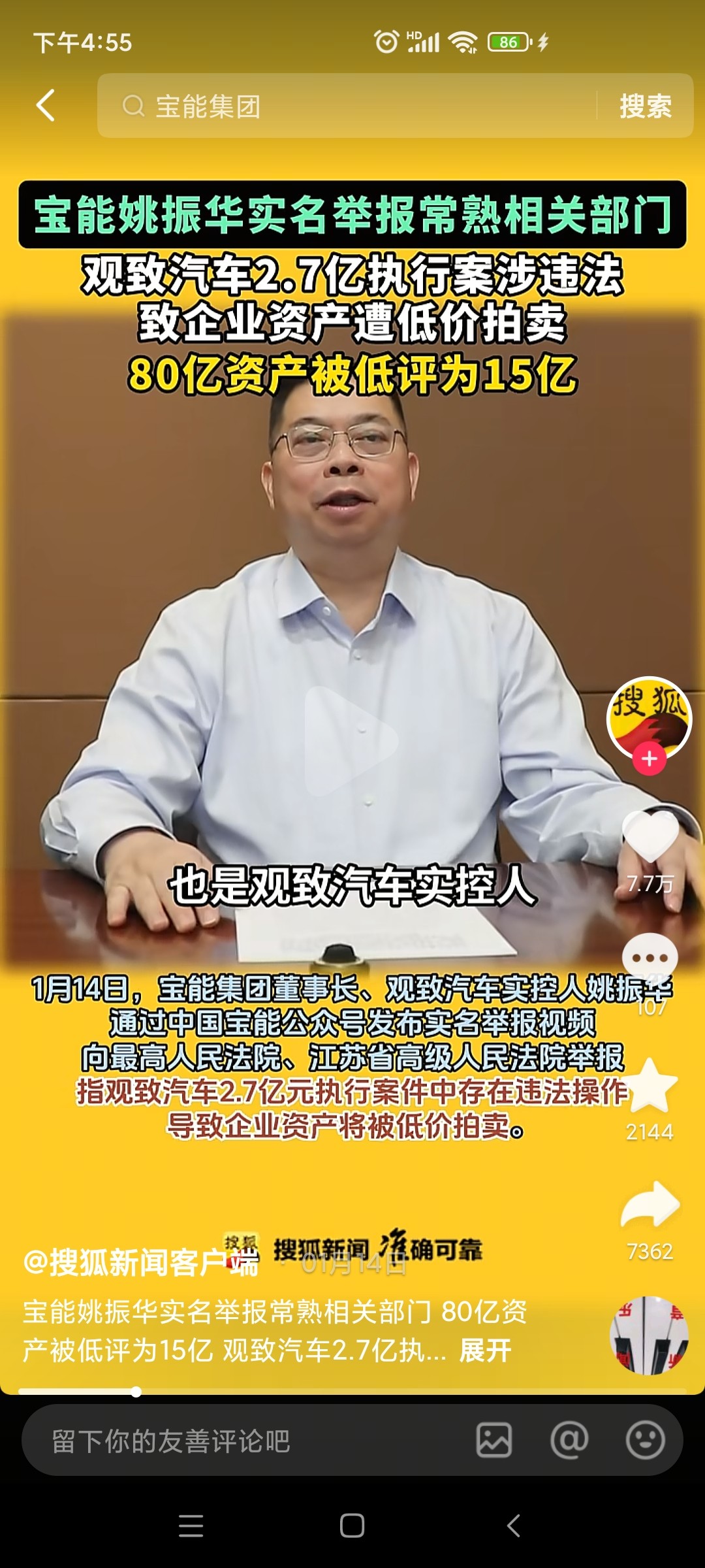 姚老板投入260亿元,观致汽车第三方评估净资产80亿元,地方ZF找人评估仅15亿元,起拍价8.6亿元,有人出价就可以拿走。