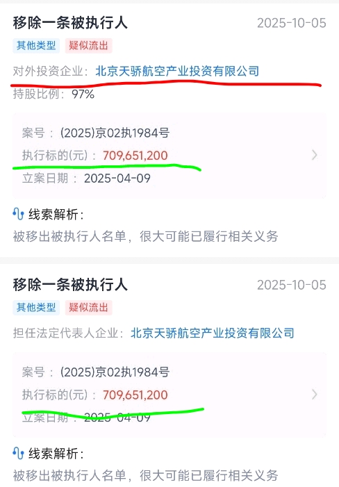 信威,天骄的执行案件应该已经执行完毕了,由于某些原因,有的平台还没有更新过来