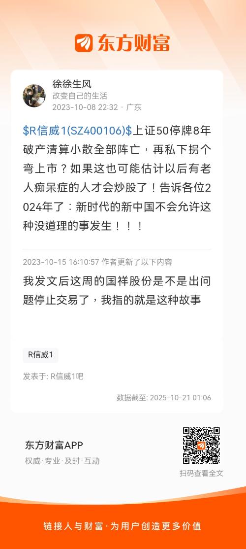 $R信威1(SZ400106)$上证50停牌8年破产清算小散全部阵亡,再私下拐个弯上市?如果这也可能估计以后有老人痴呆症的人才会炒股了!告诉各位2024年了:新时代的新中国不会允许这种没道理的事发生!!!