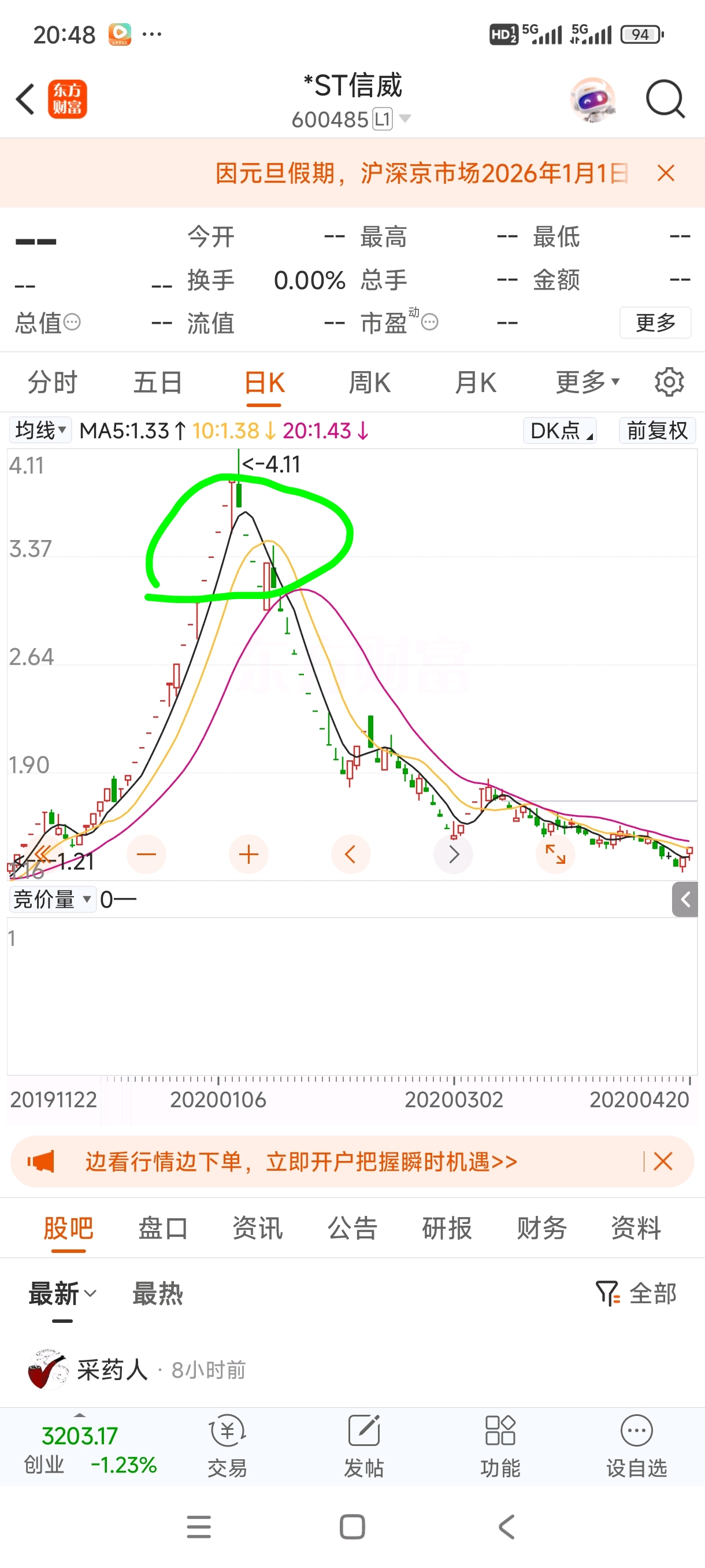 呵呵!新浪财经,确实是这样显示的啊!看好这三个时间点!!前面两个是2020年4月17日,2020年4月20日两天,最近的是2025年12月31日!成功了!!