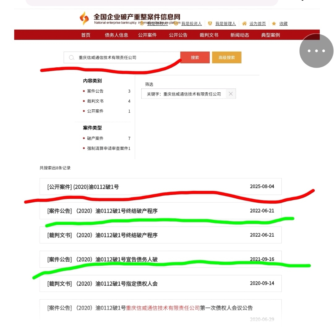 先看事实经过:重庆信威公司(注意不是信威集团)早就开始破产清算了,因为这公司剩下的钱太少,甚至不够管理费,这家公司的管理者就把这些钱分配给寨主们,然后在2022年6月公告终结破产程序。