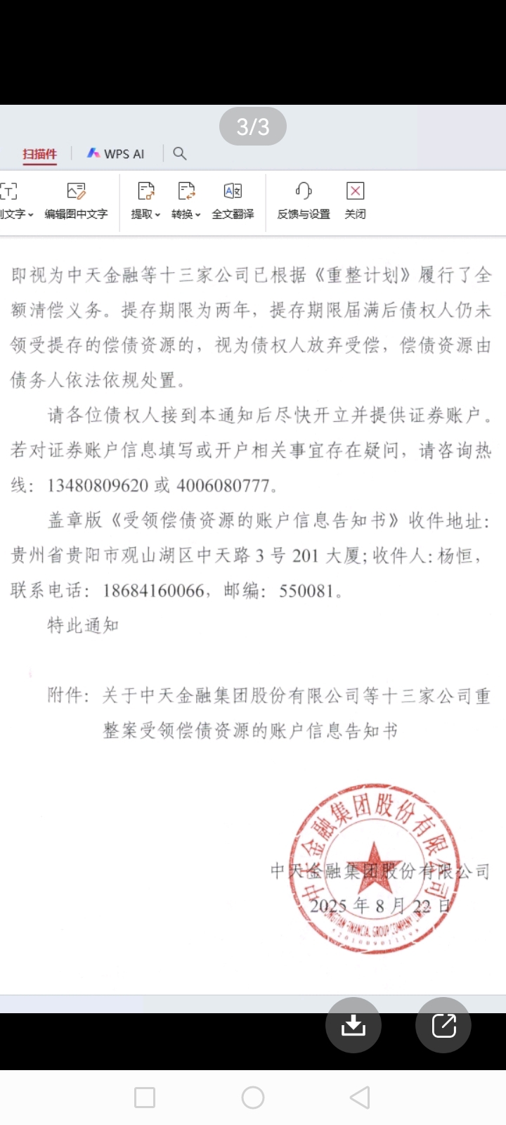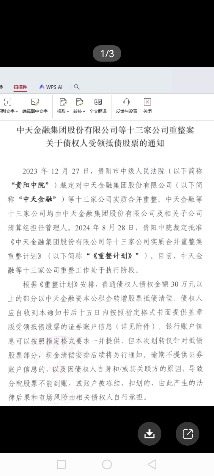 实在不行,学习一下中天金融的重整方案,债转股,以一定的价格抵消外债,重整后重新上