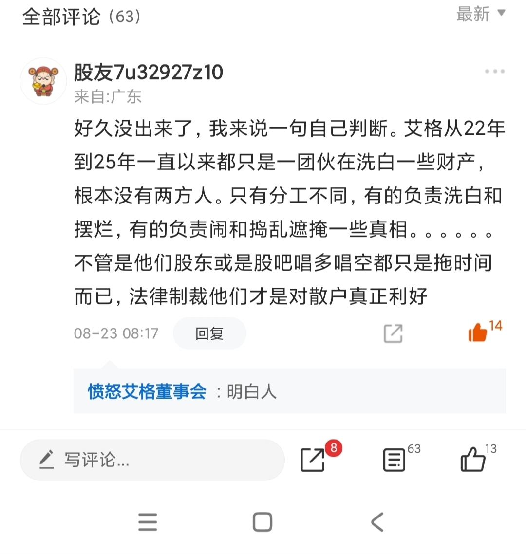 $R艾格 1(SZ400118)$ 从他们在股吧对我的回复,我就知道托比散户多。不管他们做什么,只记得核心就行了.拖时间、洗白资产。不停交叉大额投资在不开业或不存在的公司,就是为了以后再打官司,到时候又费时间,资产就真的洗白了