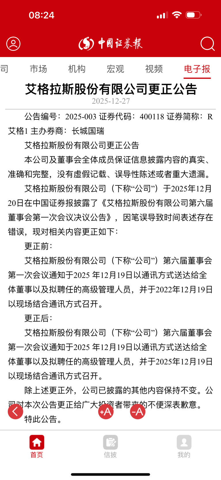 $R艾格 1(SZ400118)$ 公告更新挺即时的