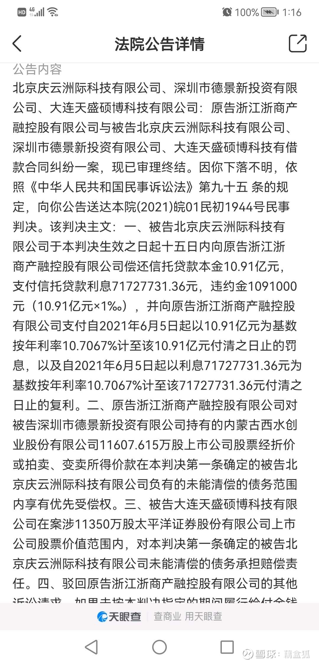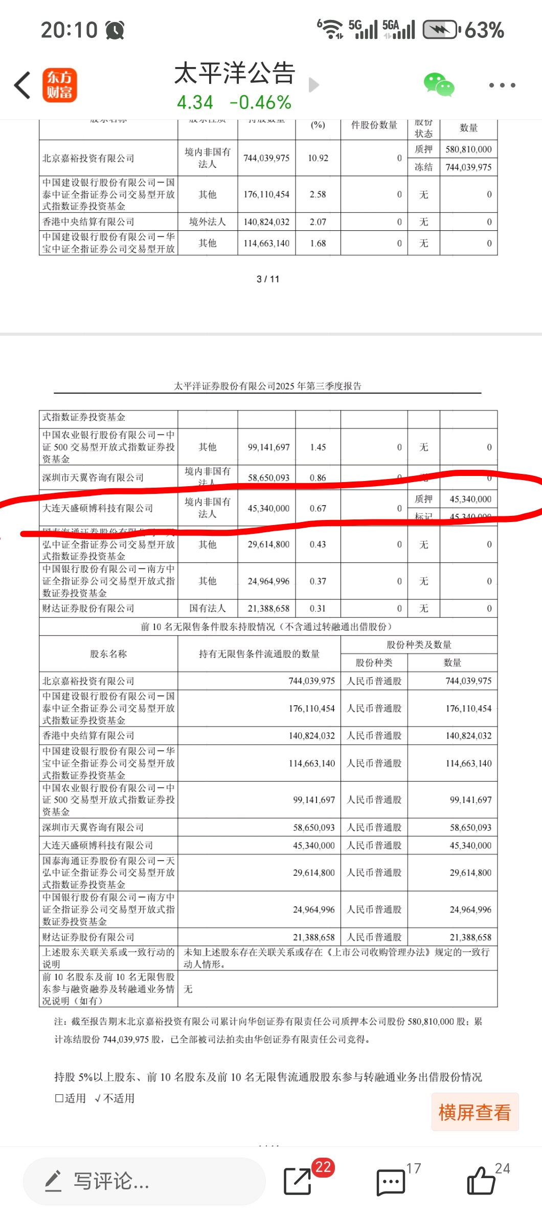 10月29日德景新解除冻结,太平洋三季报,同判决中连带债务太平洋11350股被司法标记尚未处理。耐心等待。