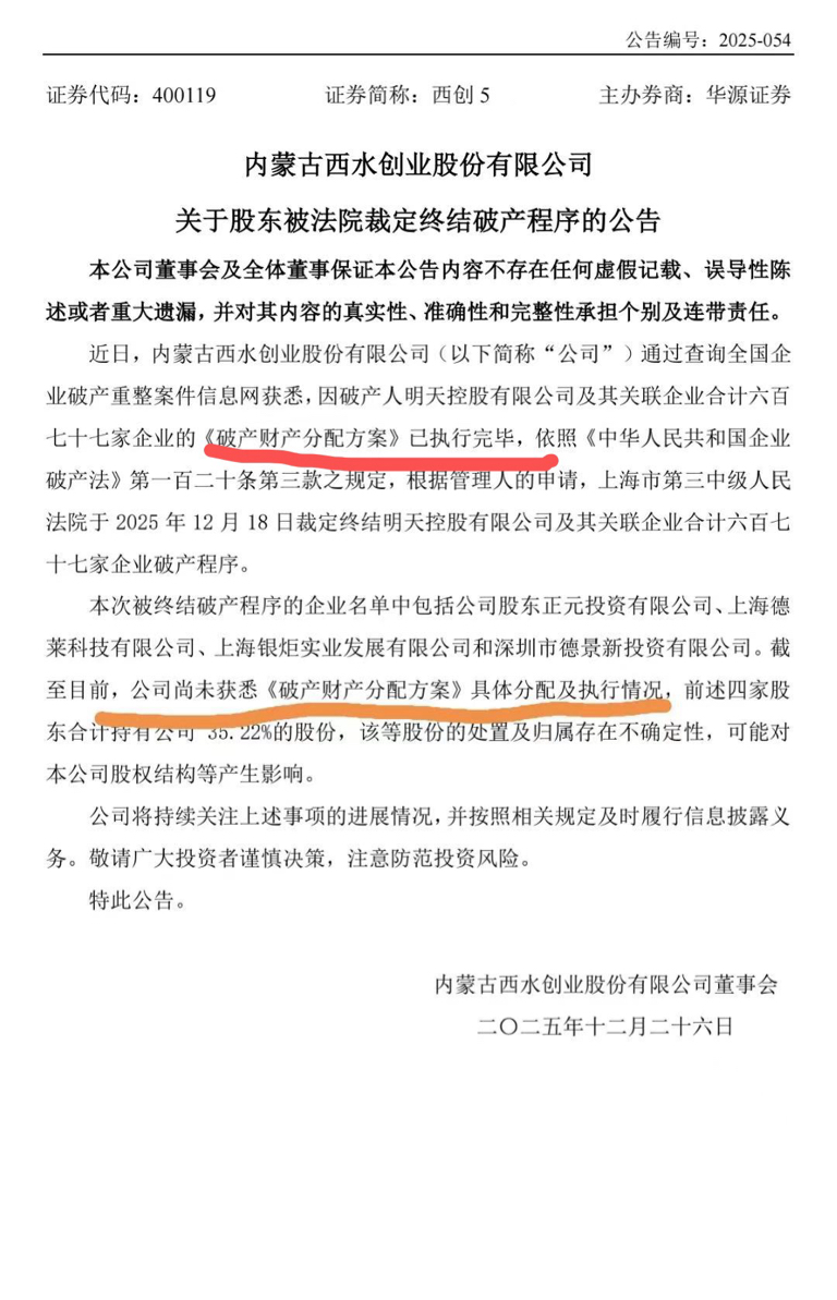 划重点“《破产财产分配方案》已执行完毕,公司尚未获悉具体分配及执行情况”,办理完