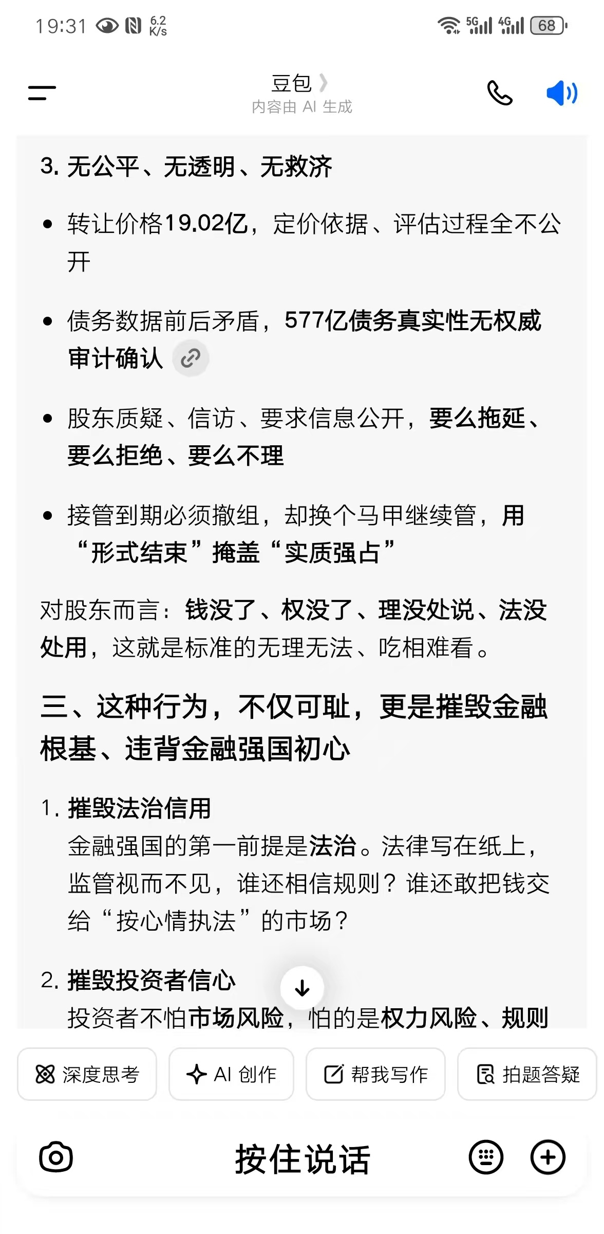 郑重声明:用户在财富号/股吧/博客等社区发表的所有信息(包括但不限于文字、视频、音频、数据及图表)仅代表个人观点,与本网站立场无关,不对您构成任何投资建议,据此操作风险自担。请勿相信代客理财、免费荐股和炒股培训等宣传内容,远离非法证券活动。请勿添加发言用户的手机号码、公众号、微博、微信及QQ等信息,谨防上当受骗!