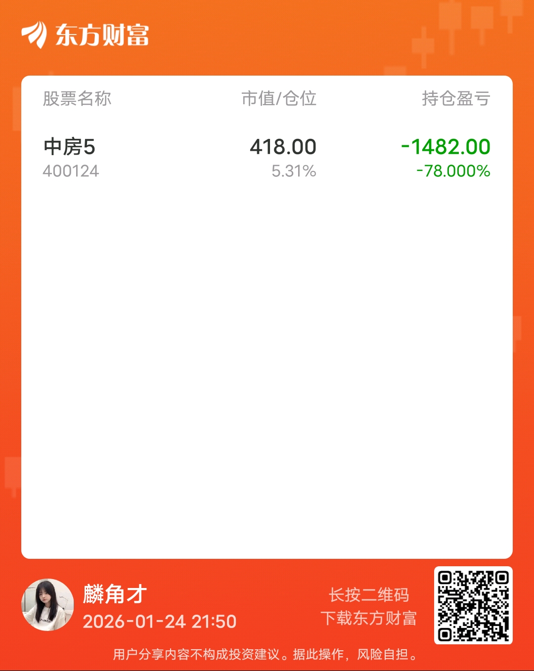 温馨提示: 1.根据《证券法》规定,禁止编造、传播虚假信息或者误导性信息,扰乱证券市场;2.用户在本社区发表的所有资料、言论等仅代表个人观点,与本网站立场无关,不对您构成任何投资建议。用户应基于自己的独立判断,自行决定证券投资并承担相应风险。《东方财富社区管理规定》