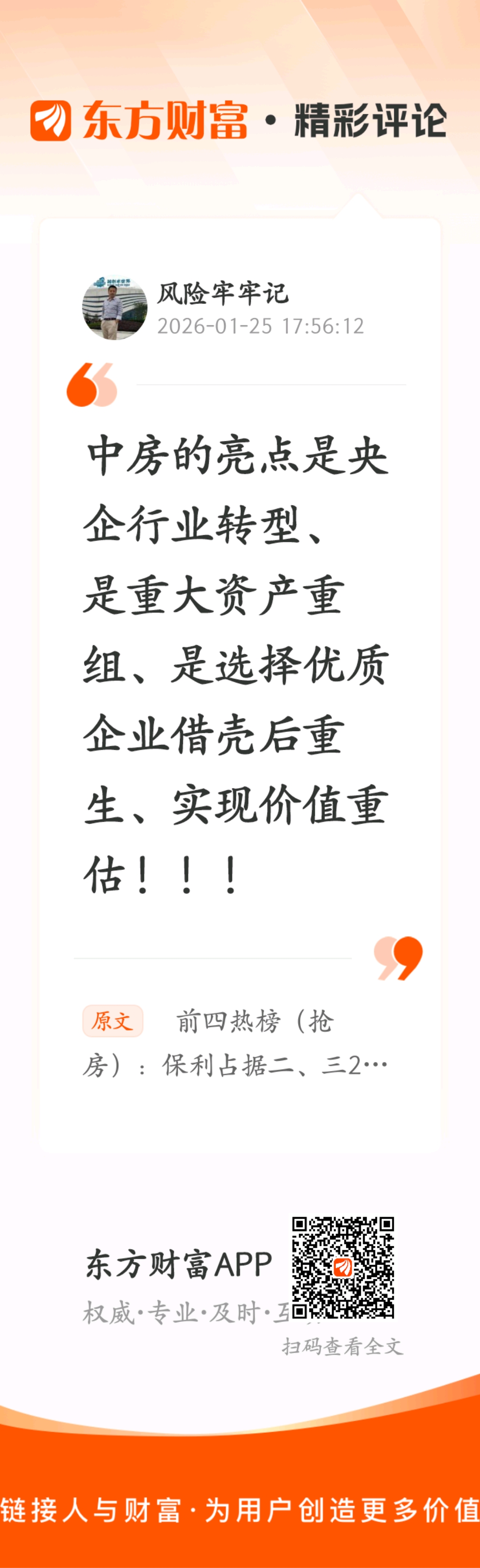 //@风险牢牢记 :中房的亮点是央企行业转型、是重大资产重组、是选择优质企业借壳后重生、实现价值重估!!!