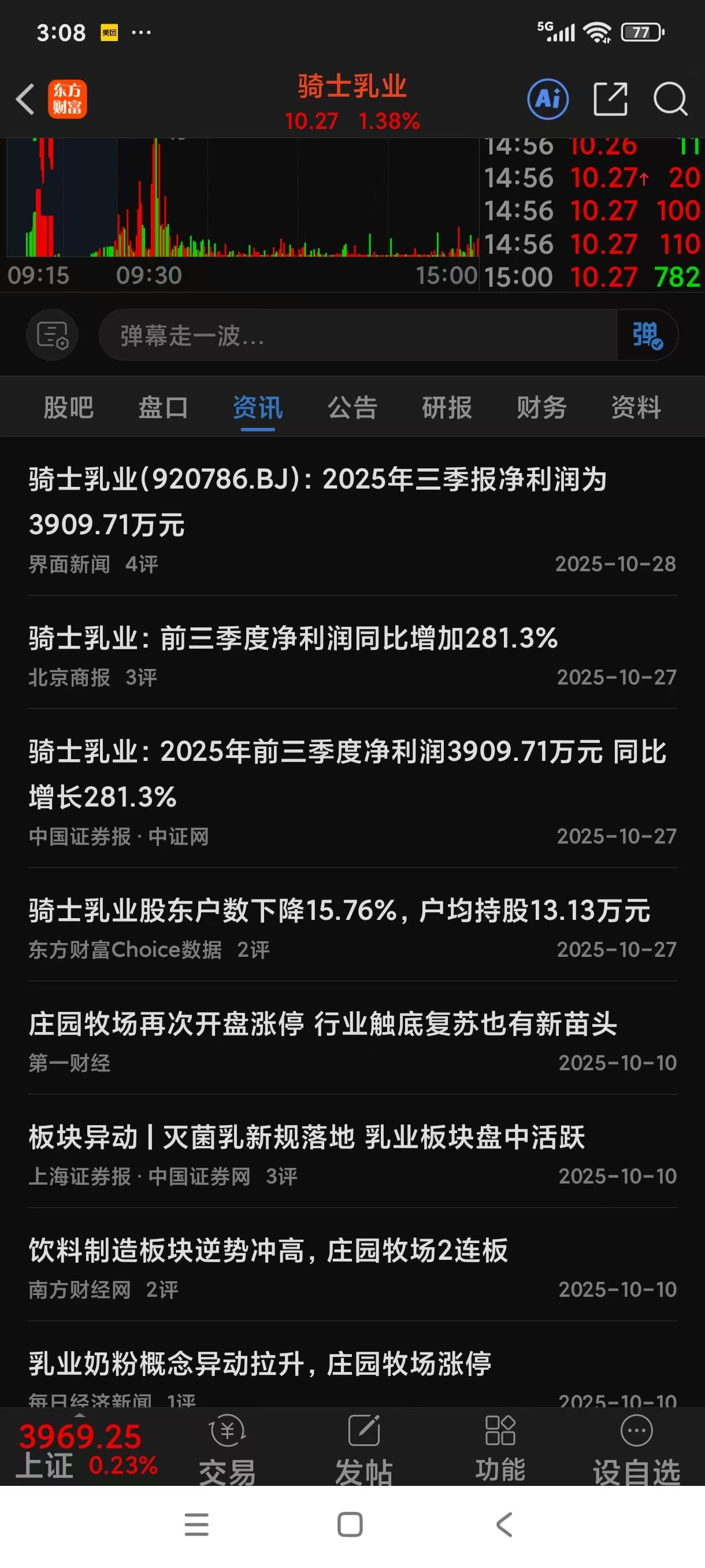 我认为科迪乳业三季度业绩不会差,因为大部分乳业公司业绩都是增长的,看看骑士乳业,三季度业绩同比增长281.3%。