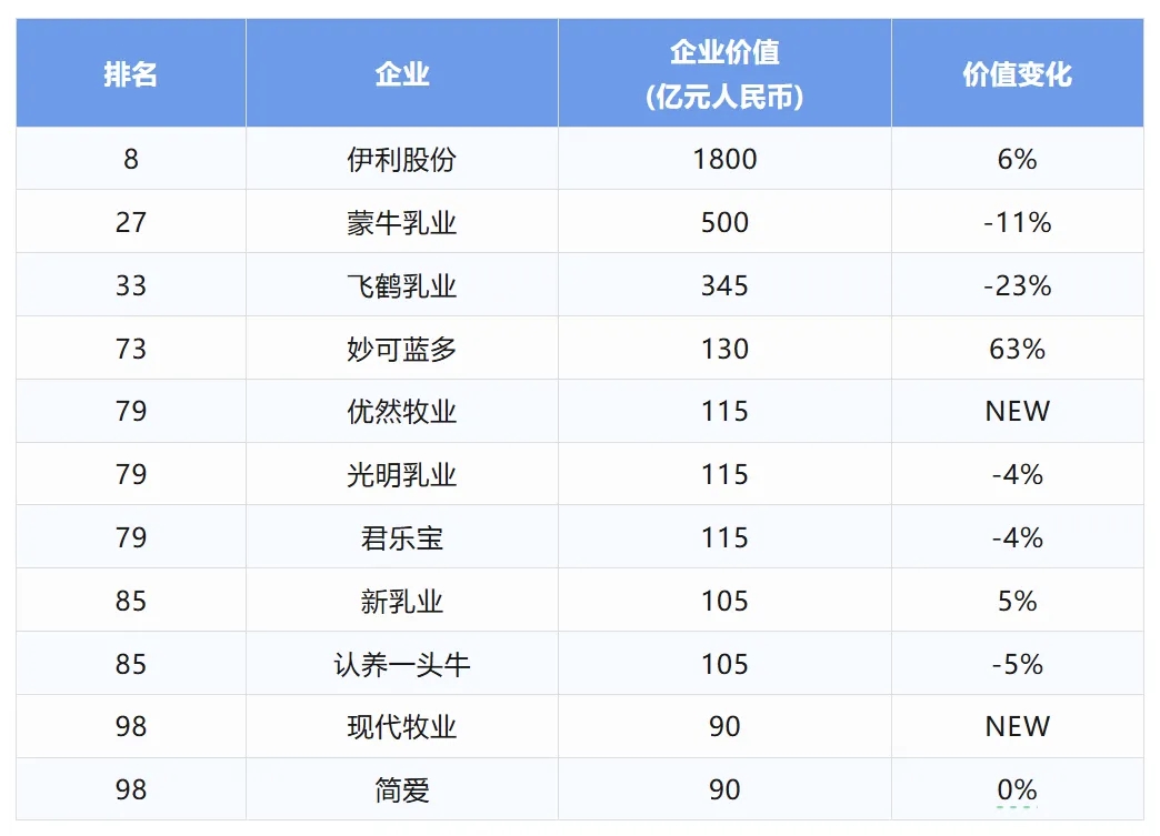 【胡润研究院】11家乳企上榜2025中国食品行业百强,猜猜科迪排第几。