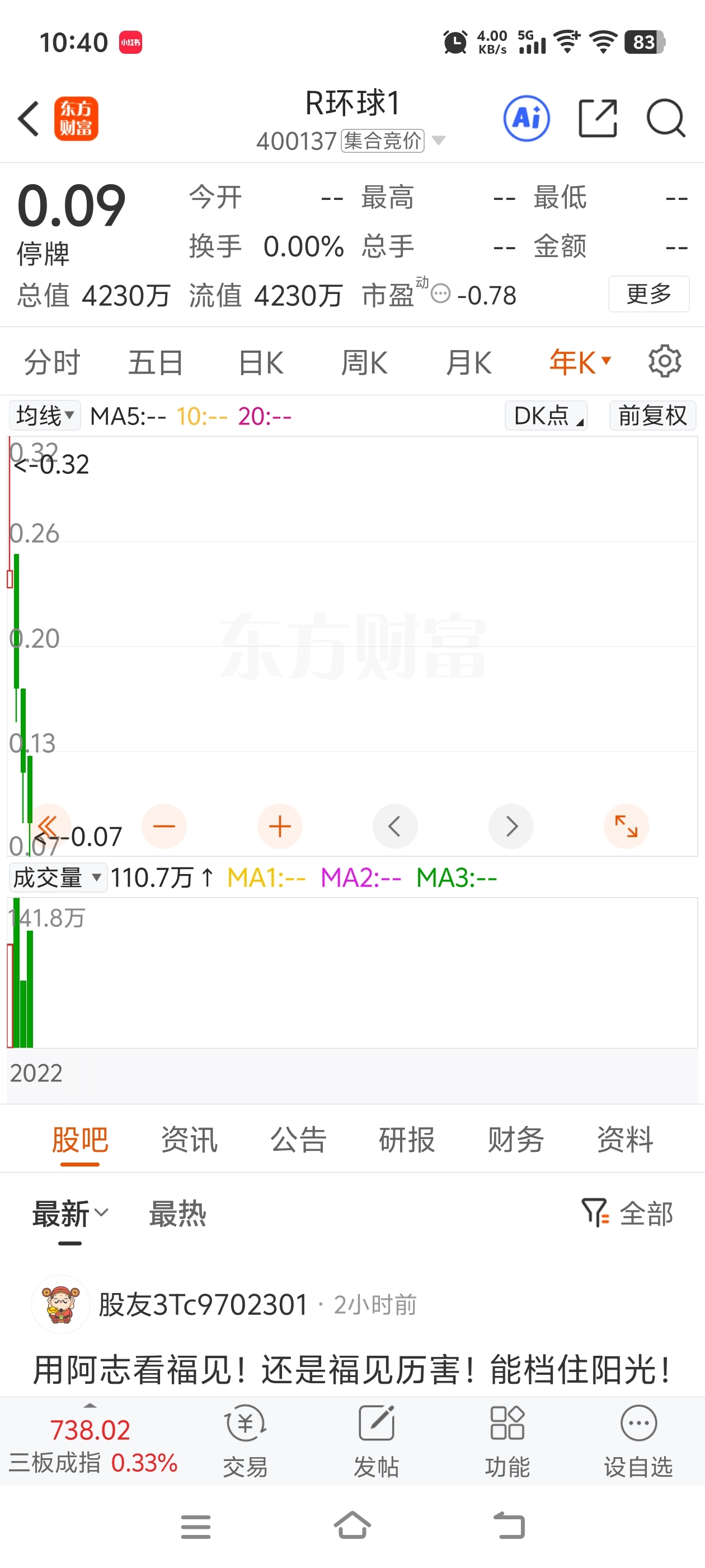 $R环球1(SZ400137)$ 兄弟们,你们的资产缩水多少了???周学云周老板的资产打对折了
