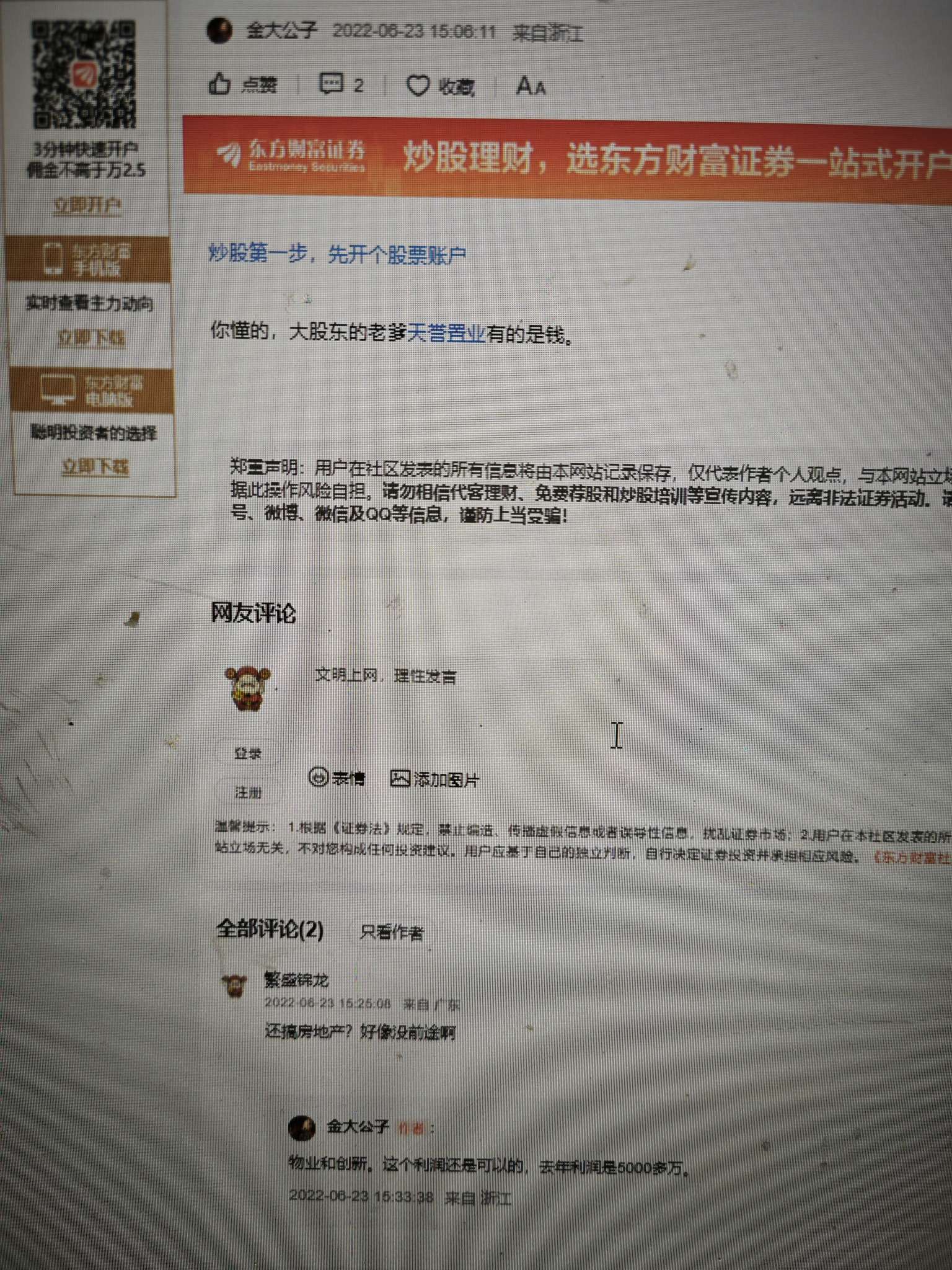 温馨提示: 1.根据《证券法》规定,禁止编造、传播虚假信息或者误导性信息,扰乱证券市场;2.用户在本社区发表的所有资料、言论等仅代表个人观点,与本网站立场无关,不对您构成任何投资建议。用户应基于自己的独立判断,自行决定证券投资并承担相应风险。《东方财富社区管理规定》