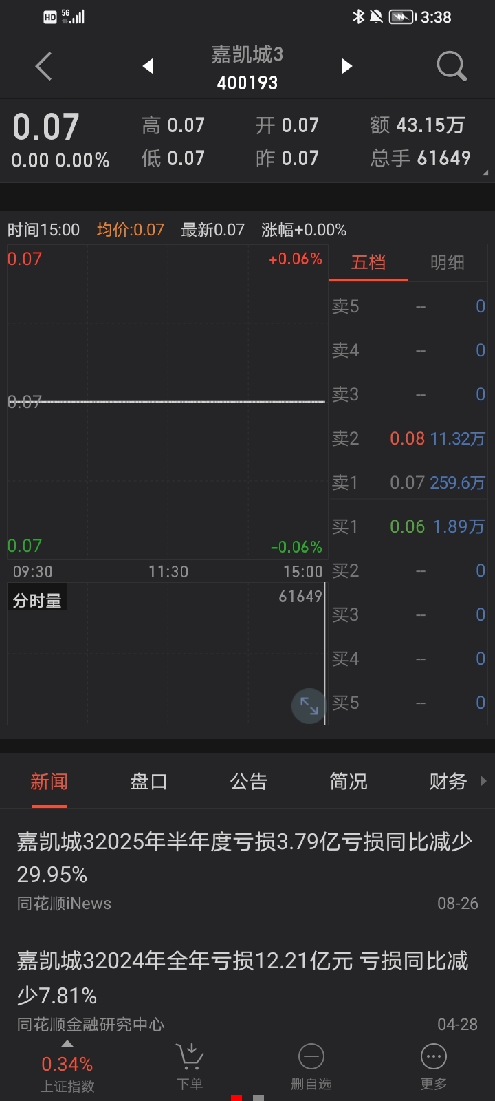 3字头的嘉凯城即将压到6分陪晨臻了。
