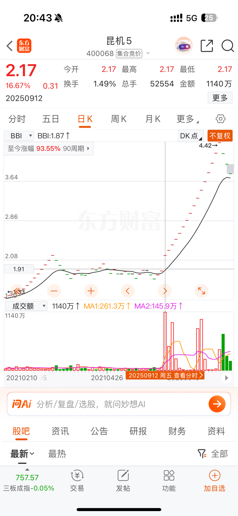 $当代3(SZ400147)$ 如果债权人砸盘开的低,参考昆机走势