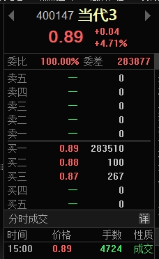 $当代3(SZ400147)$ 前面两个涨停 可以买进去 胆子太小了 第三个涨停加仓十几万一股不成交 挂了隔夜单子编号5 两万多大洋 试试水 还是买不进去 封单不减 比昆机5强太多了 能不能超越昆机5 15板 后天开始不挂单子了
