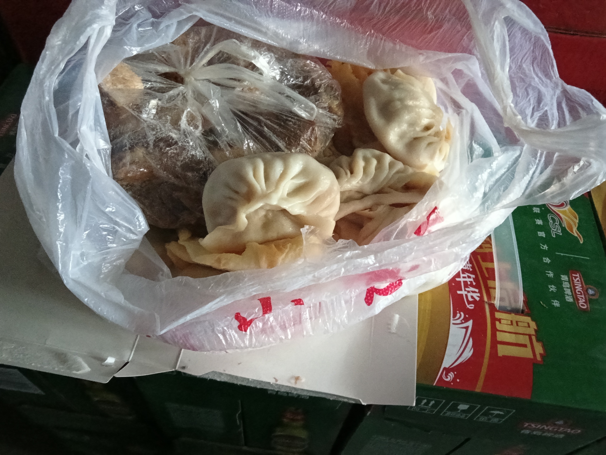 开盲盒,早上厨师送的,饺子看样子虾仁