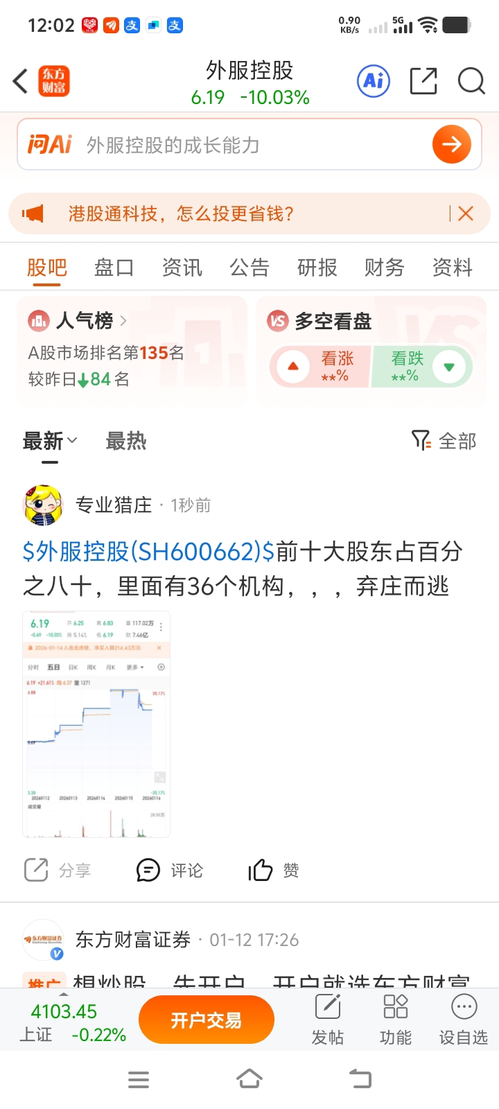 温馨提示: 1.根据《证券法》规定,禁止编造、传播虚假信息或者误导性信息,扰乱证券市场;2.用户在本社区发表的所有资料、言论等仅代表个人观点,与本网站立场无关,不对您构成任何投资建议。用户应基于自己的独立判断,自行决定证券投资并承担相应风险。《东方财富社区管理规定》