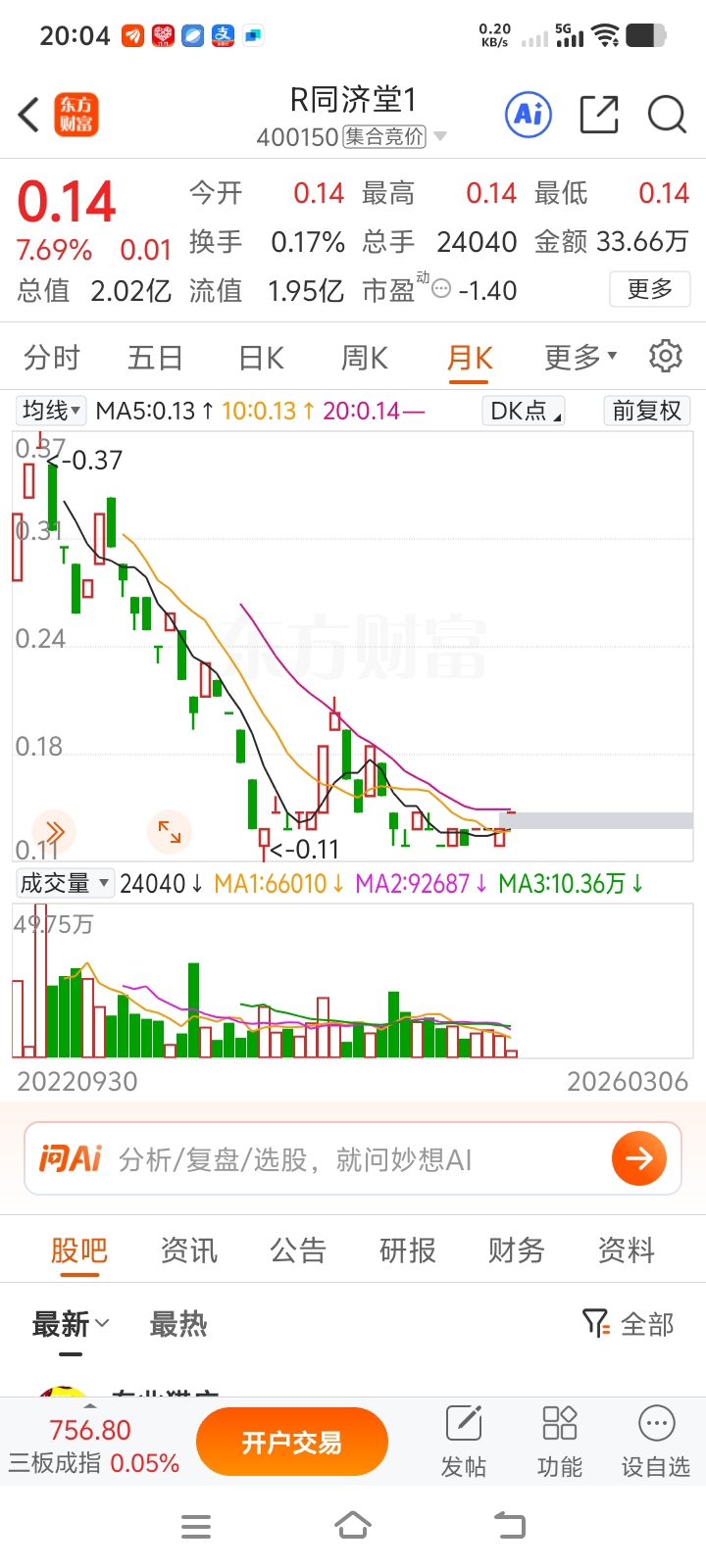 $R同济堂1(SZ400150)$ 成交了33万,有23万是大爷的一个账户买的,,过几天停盘,许多人又拍断了大腿,哈哈哈哈哈,,