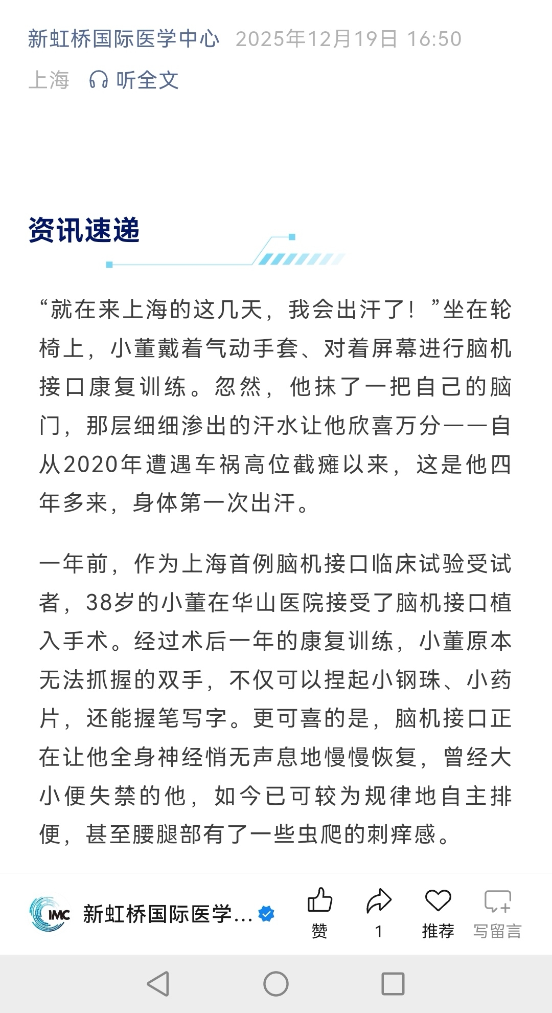 $R海医1(SZ400155)$ 脑机接囗,园区内的华山医院一年前就开始搞,有钱才有装备