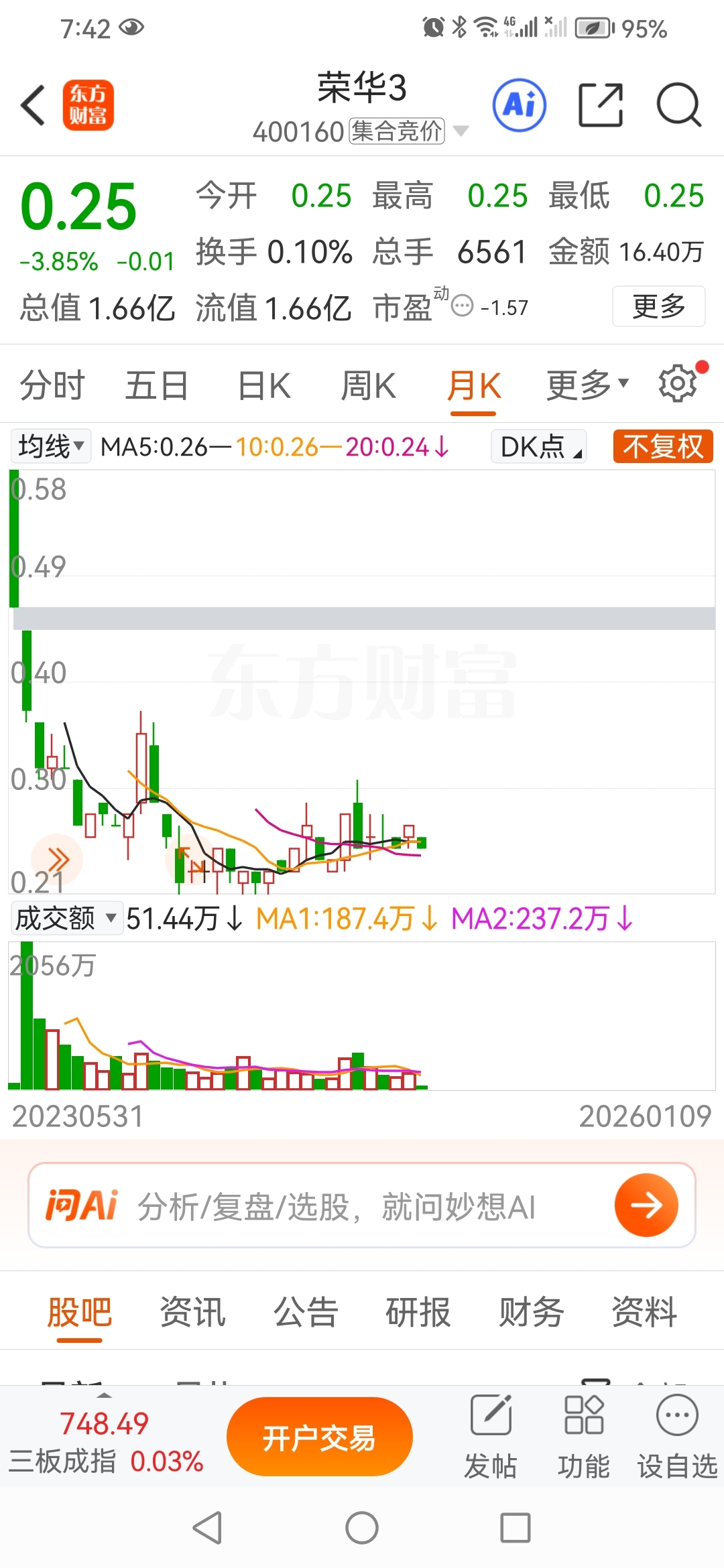 $荣华3(SZ400160)$ 髙跟鞋的脚尖顶部向上变盘,留在三毛以下的时日不多了
