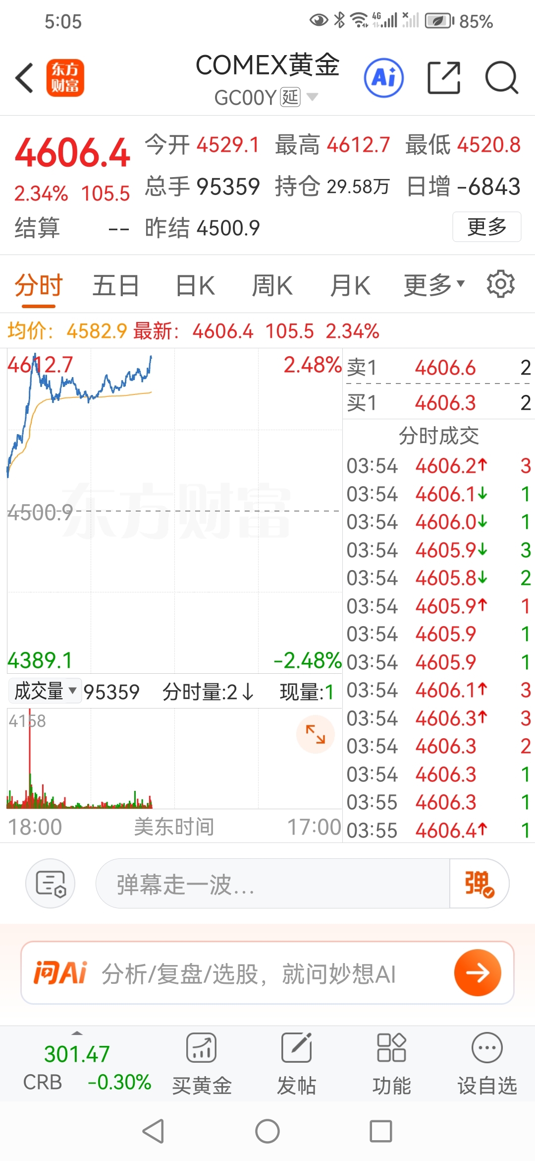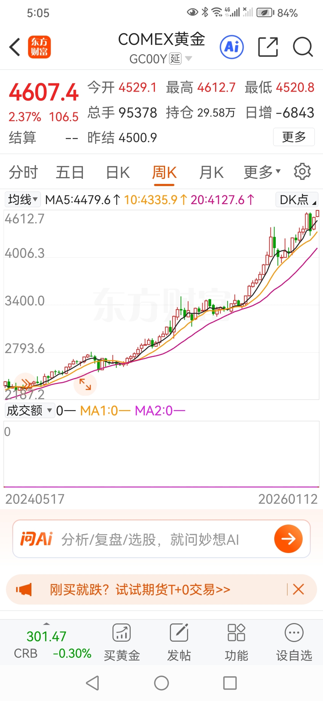 今日黄金期货创历史新髙。